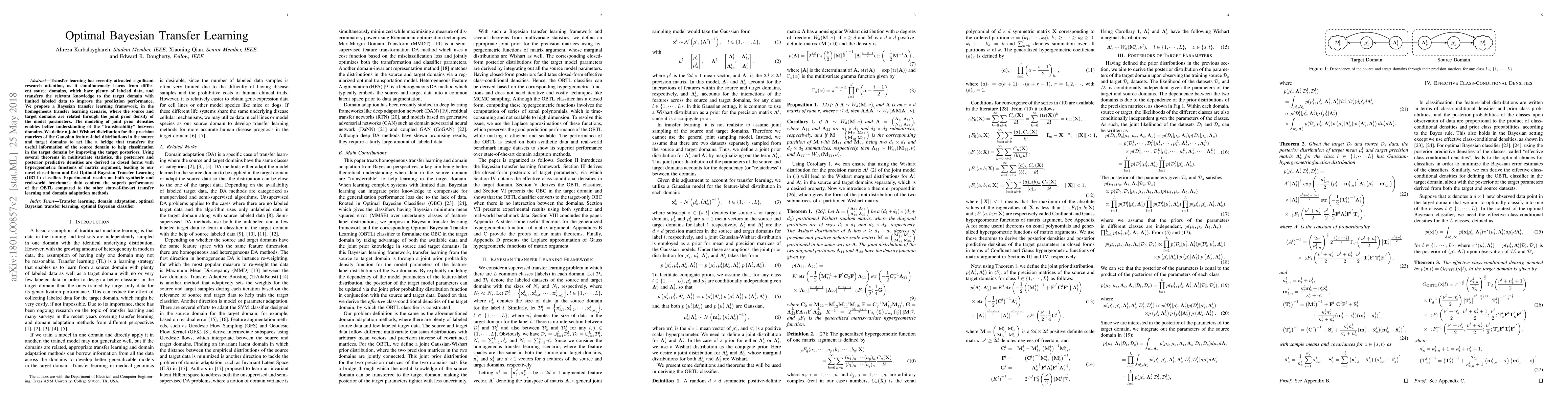 This paper proposes a Bayesian transfer learning framework that leverages joint prior densities to enhance knowledge transfer between source and target domains. The method employs a joint Wishart density for precision matrices, leading to a novel Optimal Bayesian Transfer Learning (OBTL) classifier with closed-form posteriors, which outperforms other state-of-the-art methods in experiments.