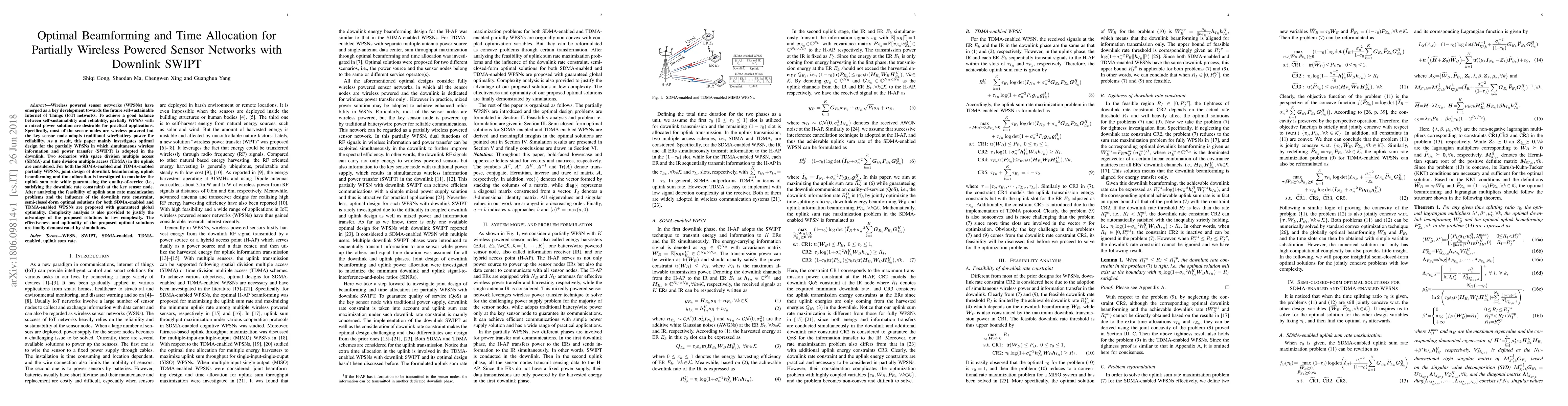 This paper investigates optimal beamforming and time allocation for partially wireless powered sensor networks using simultaneous wireless information and power transfer (SWIPT) in the downlink. It proposes semi-closed-form optimal solutions for both SDMA-enabled and TDMA-enabled networks to maximize uplink sum rate while ensuring service quality at a key sensor node, demonstrating their effectiveness through simulations.