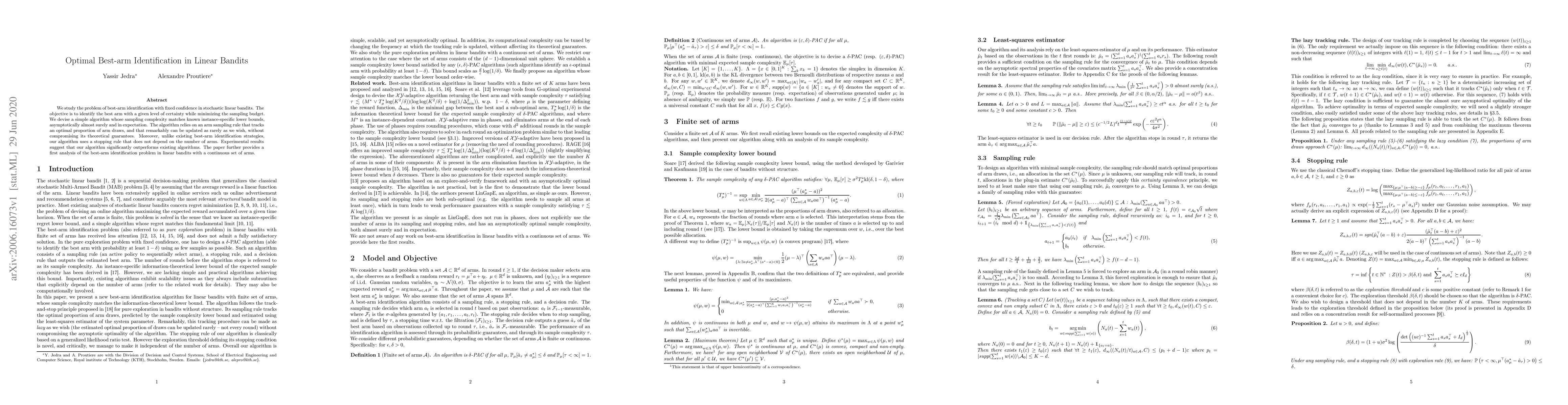 This paper proposes a novel algorithm for optimal best-arm identification in stochastic linear bandits, achieving sampling complexity that matches known lower bounds while using a stopping rule independent of the number of arms. Experimental results show significant performance improvements over existing methods.