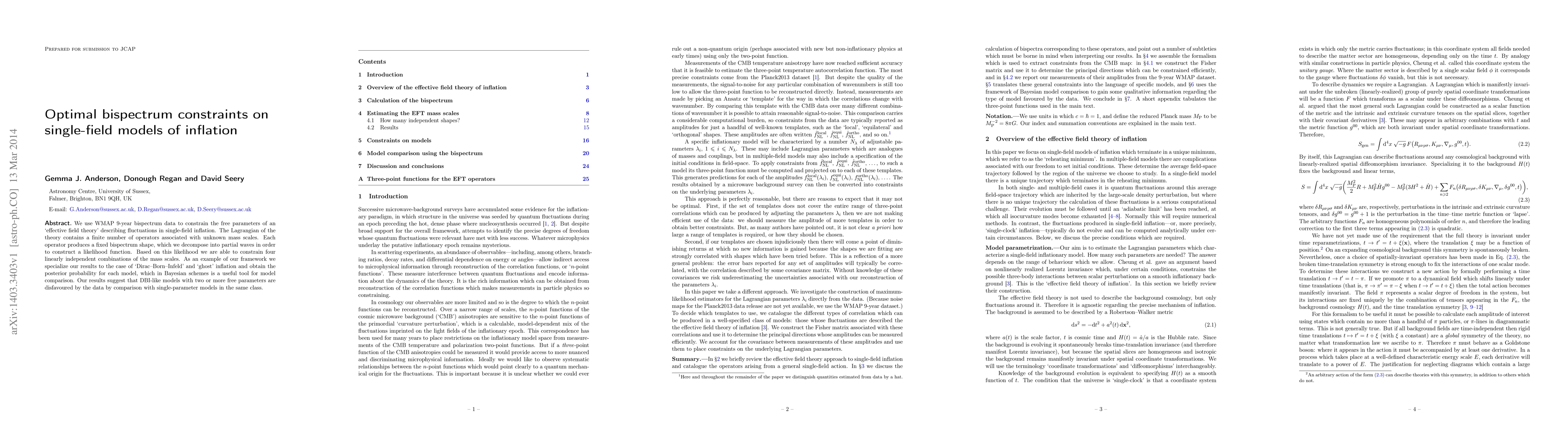 We use WMAP 9-year bispectrum data to constrain the free parameters of an 'effective field theory' describing fluctuations in single-field inflation. The Lagrangian of the theory contains a finite number of operators associated with unknown mass scales. Each operator produces a fixed bispectrum shape, which we decompose into partial waves in order to construct a likelihood function. Based on this likelihood we are able to constrain four linearly independent combinations of the mass scales. As an example of our framework we specialize our results to the case of 'Dirac-Born-Infeld' and 'ghost' inflation and obtain the posterior probability for each model, which in Bayesian schemes is a useful tool for model comparison. Our results suggest that DBI-like models with two or more free parameters are disfavoured by the data by comparison with single parameter models in the same class.