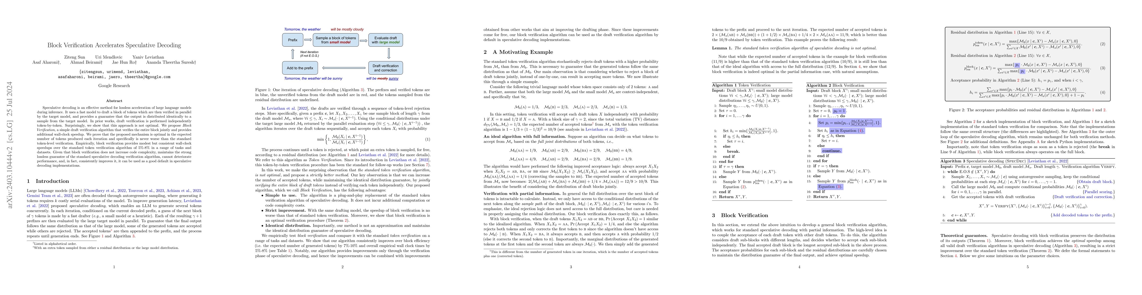 This paper proposes an optimal block-level draft verification algorithm to accelerate speculative decoding in large language models, achieving higher speedups by formulating verification as a block-level optimal transport problem, and empirically demonstrating consistent improvements over token-level verification.