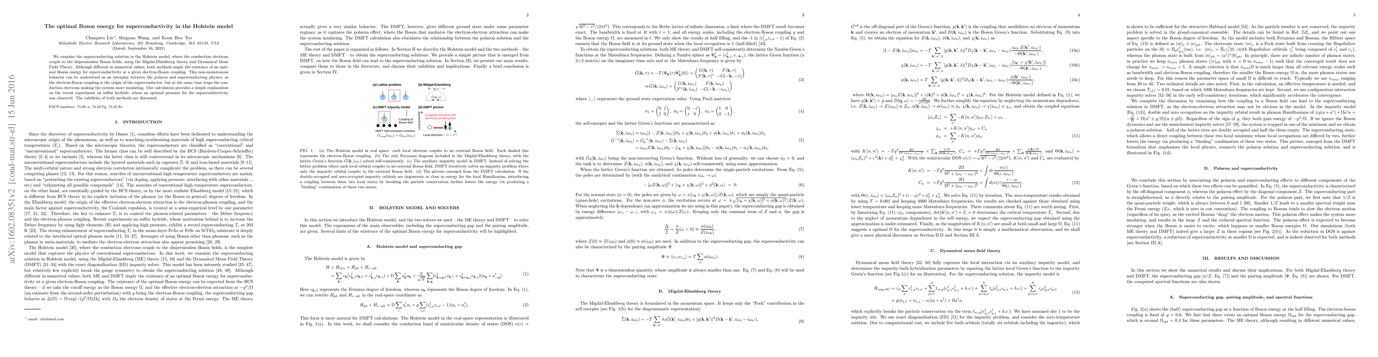We examine the superconducting solution in the Holstein model, where the conduction electrons couple to the dispersionless Boson fields, using the Migdal-Eliashberg theory and Dynamical Mean Field Theory. Although different in numerical values, both methods imply the existence of an optimal Boson energy for superconductivity at a given electron-Boson coupling. This non-monotonous behavior can be understood as an interplay between the polaron and superconducting physics, as the electron-Boson coupling is the origin of the superconductor, but at the same time traps the conduction electrons making the system more insulating. Our calculation provides a simple explanation on the recent experiment on sulfur hydride (H$_2$S), where an optimal pressure for the superconductivity was observed. The validities of both methods are discussed.