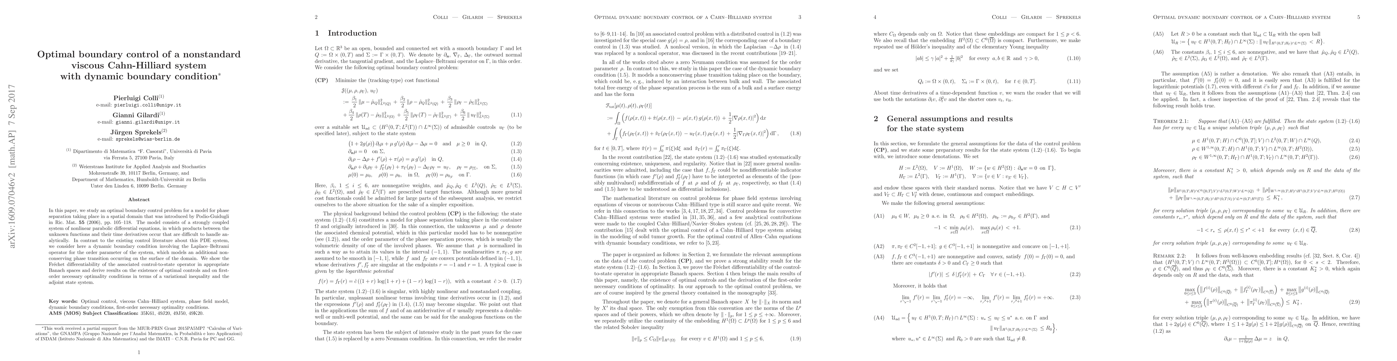 This paper explores optimal boundary control for a nonstandard viscous Cahn-Hilliard system with a dynamic boundary condition, demonstrating the Fr\'echet differentiability of the control-to-state operator and establishing existence results and first-order necessary optimality conditions.