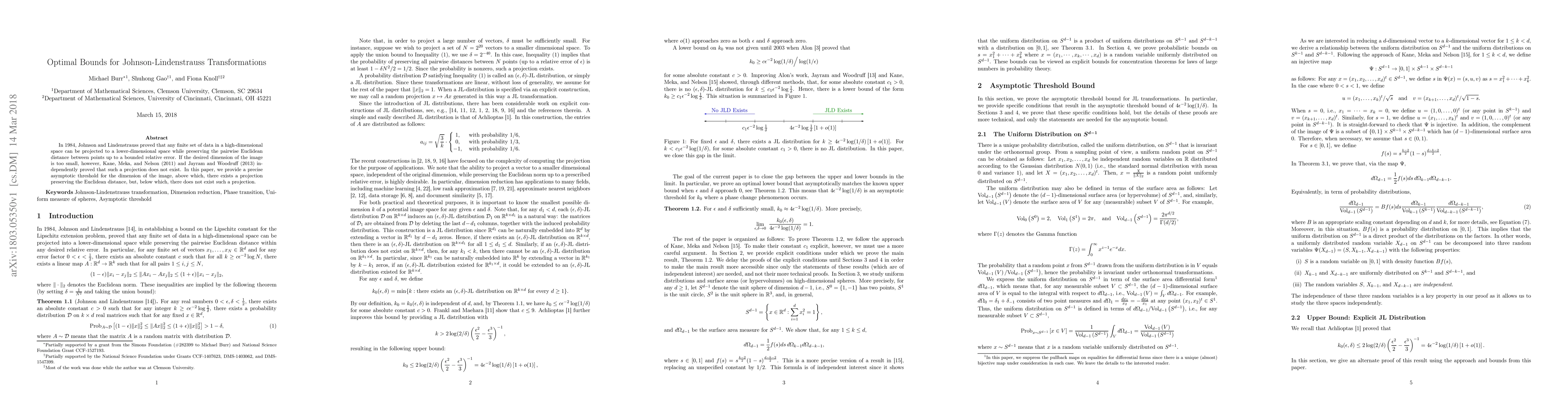 In 1984, Johnson and Lindenstrauss proved that any finite set of data in a high-dimensional space can be projected to a lower-dimensional space while preserving the pairwise Euclidean distance between points up to a bounded relative error. If the desired dimension of the image is too small, however, Kane, Meka, and Nelson (2011) and Jayram and Woodruff (2013) independently proved that such a projection does not exist. In this paper, we provide a precise asymptotic threshold for the dimension of the image, above which, there exists a projection preserving the Euclidean distance, but, below which, there does not exist such a projection.