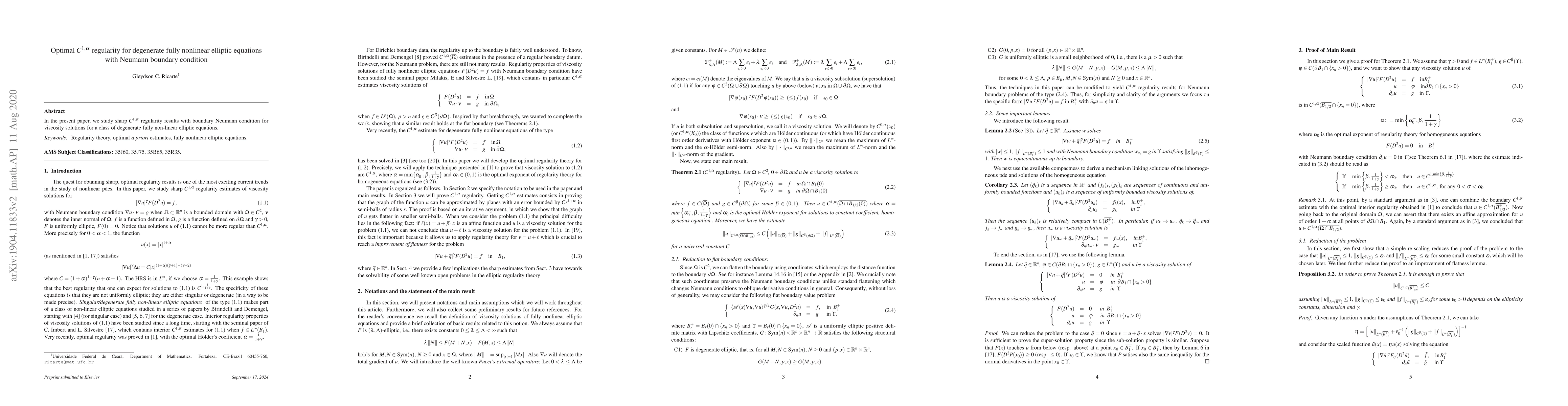 Summary: This paper investigates optimal C^{1,\alpha} regularity for viscosity solutions of degenerate fully nonlinear elliptic equations under Neumann boundary conditions, establishing sharp regularity results.
