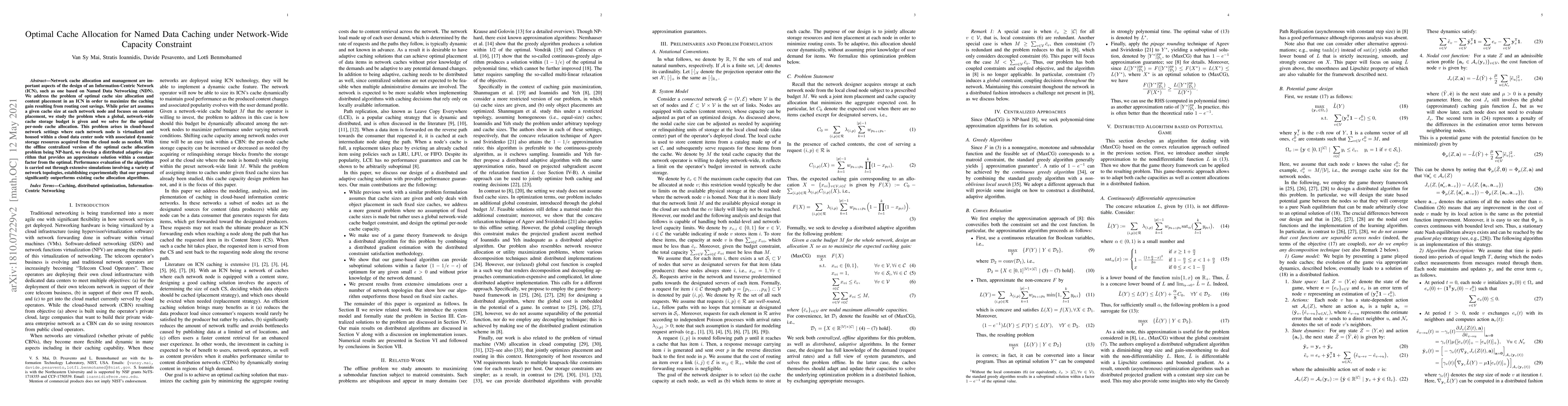 This paper proposes an optimal cache allocation strategy for Named Data Networking under a global storage budget, focusing on maximizing caching gain. It develops a distributed adaptive algorithm to approximate the optimal solution, which significantly outperforms existing methods in extensive simulations.