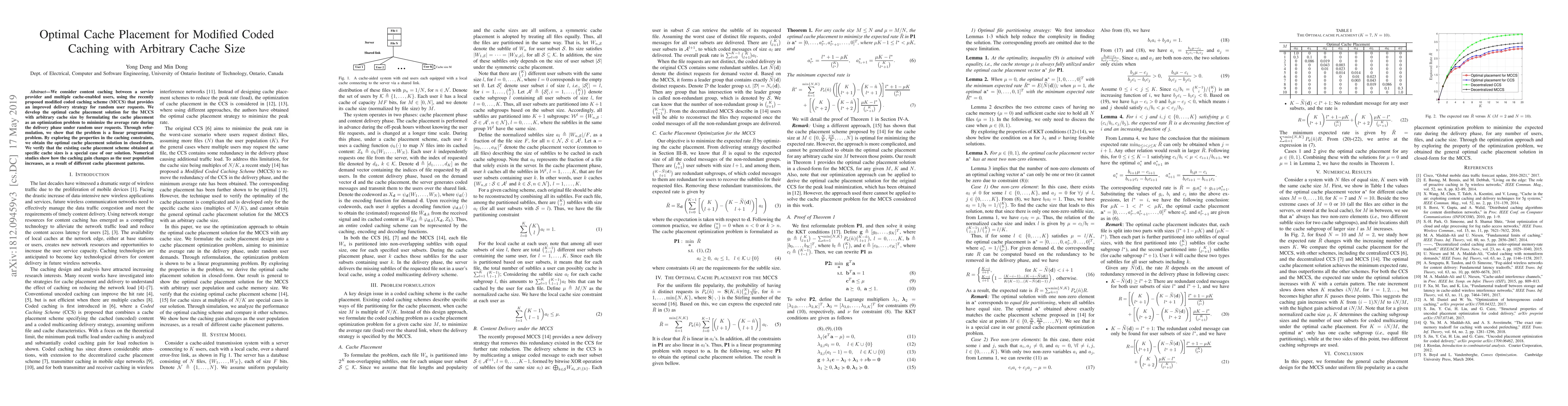 This paper develops an optimal cache placement strategy for a modified coded caching scheme (MCCS) to minimize average delivery rate under random user requests. The authors formulate the problem as a linear programming problem and derive a closed-form solution, showing that existing schemes are special cases of their general solution. Numerical studies illustrate caching gain variations with increasing user population.