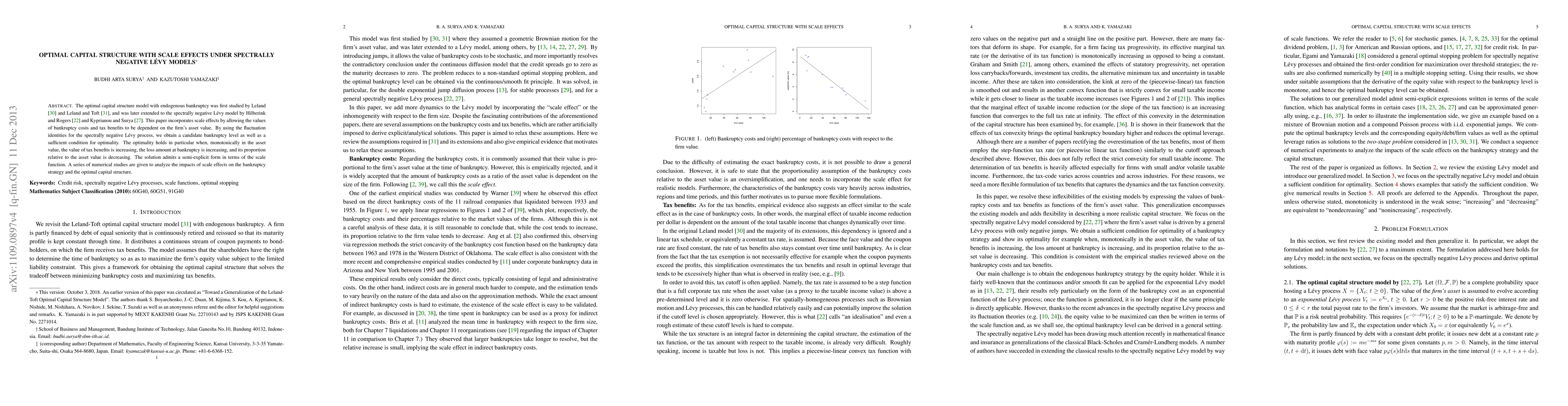 This paper explores optimal capital structure under spectrally negative Lévy models, incorporating scale effects where bankruptcy costs and tax benefits depend on the firm's asset value. It provides a semi-explicit solution and analyzes how these effects influence default strategy and optimal capital structure through numerical studies.