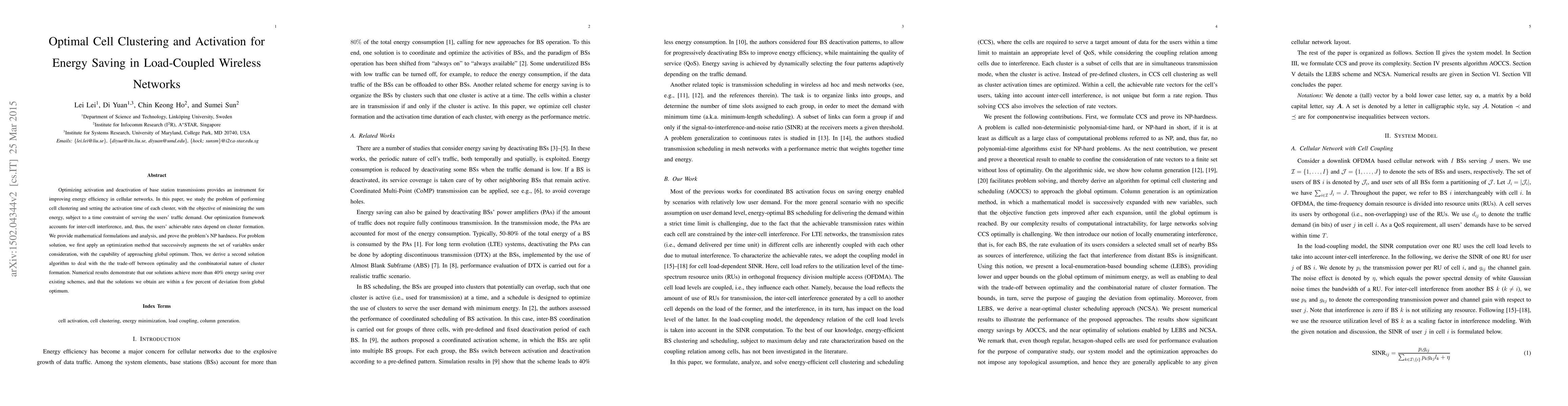 Optimizing activation and deactivation of base station transmissions provides an instrument for improving energy efficiency in cellular networks. In this paper, we study optimal cell clustering and scheduling of activation duration for each cluster, with the objective of minimizing the sum energy, subject to a time constraint of delivering the users' traffic demand. The cells within a cluster are simultaneously in transmission and napping modes, with cluster activation and deactivation, respectively. Our optimization framework accounts for the coupling relation among cells due to the mutual interference. Thus, the users' achievable rates in a cell depend on the cluster composition. On the theoretical side, we provide mathematical formulation and structural characterization for the energy-efficient cell clustering and scheduling optimization problem, and prove its NP hardness. On the algorithmic side, we first show how column generation facilitates problem solving, and then present our notion of local enumeration as a flexible and effective means for dealing with the trade-off between optimality and the combinatorial nature of cluster formation, as well as for the purpose of gauging the deviation from optimality. Numerical results demonstrate that our solutions achieve more than 60% energy saving over existing schemes, and that the solutions we obtain are within a few percent of deviation from global optimum.