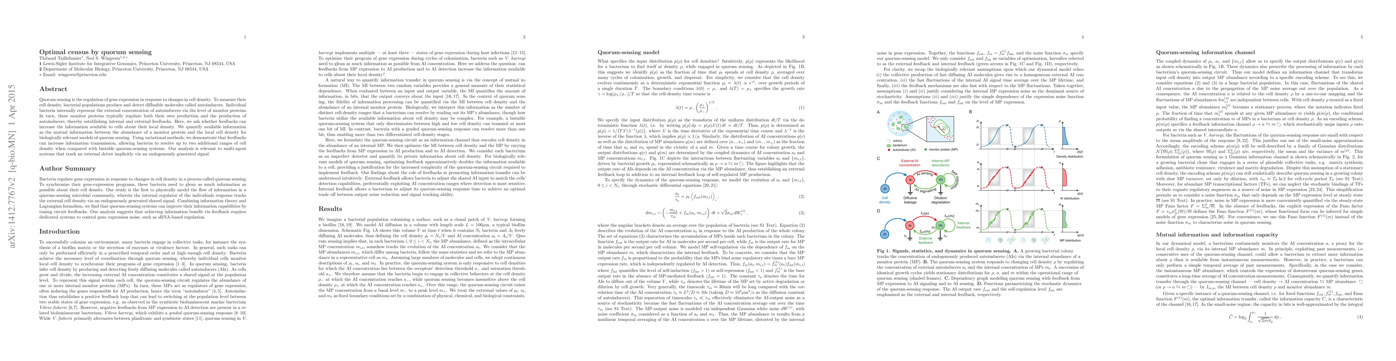 Quorum sensing is the regulation of gene expression in response to changes in cell density. To measure their cell density, bacterial populations produce and detect diffusible molecules called autoinducers. Individual bacteria internally represent the external concentration of autoinducers via the level of monitor proteins. In turn, these monitor proteins typically regulate both their own production and the production of autoinducers, thereby establishing internal and external feedbacks. Here, we ask whether feedbacks can increase the information available to cells about their local density. We quantify available information as the mutual information between the abundance of a monitor protein and the local cell density for biologically relevant models of quorum sensing. Using variational methods, we demonstrate that feedbacks can increase information transmission, allowing bacteria to resolve up to two additional ranges of cell density when compared with bistable quorum-sensing systems. Our analysis is relevant to multi-agent systems that track an external driver implicitly via an endogenously generated signal.