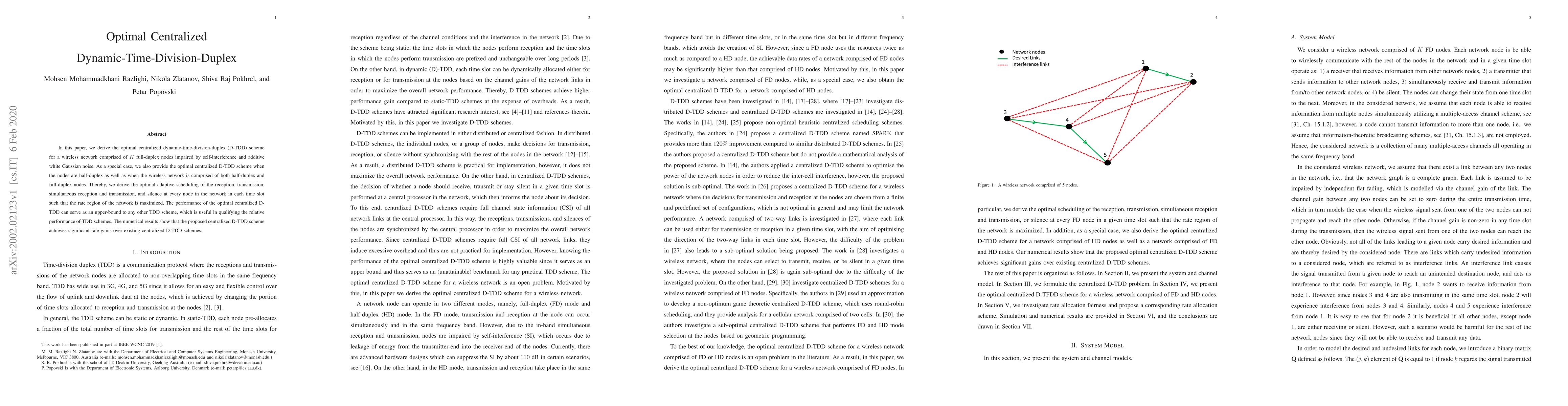 In this paper, we derive the optimal centralized dynamic-time-division-duplex (D-TDD) scheme for a wireless network comprised of $K$ full-duplex nodes impaired by self-interference and additive white Gaussian noise. As a special case, we also provide the optimal centralized D-TDD scheme when the nodes are half-duplex as well as when the wireless network is comprised of both half-duplex and full-duplex nodes. Thereby, we derive the optimal adaptive scheduling of the reception, transmission, simultaneous reception and transmission, and silence at every node in the network in each time slot such that the rate region of the network is maximized. The performance of the optimal centralized D-TDD can serve as an upper-bound to any other TDD scheme, which is useful in qualifying the relative performance of TDD schemes. The numerical results show that the proposed centralized D-TDD scheme achieves significant rate gains over existing centralized D-TDD schemes.