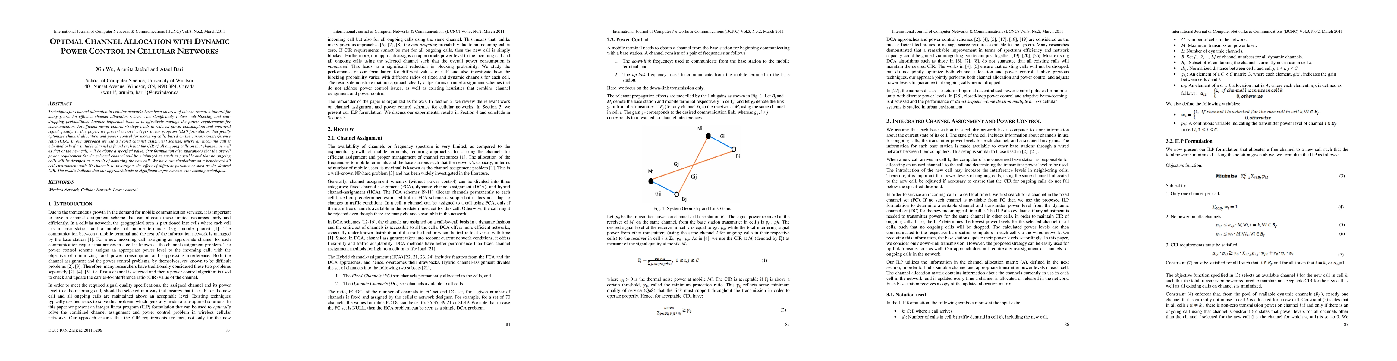 Techniques for channel allocation in cellular networks have been an area of intense research interest for many years. An efficient channel allocation scheme can significantly reduce call-blocking and calldropping probabilities. Another important issue is to effectively manage the power requirements for communication. An efficient power control strategy leads to reduced power consumption and improved signal quality. In this paper, we present a novel integer linear program (ILP) formulation that jointly optimizes channel allocation and power control for incoming calls, based on the carrier-to-interference ratio (CIR). In our approach we use a hybrid channel assignment scheme, where an incoming call is admitted only if a suitable channel is found such that the CIR of all ongoing calls on that channel, as well as that of the new call, will be above a specified value. Our formulation also guarantees that the overall power requirement for the selected channel will be minimized as much as possible and that no ongoing calls will be dropped as a result of admitting the new call. We have run simulations on a benchmark 49 cell environment with 70 channels to investigate the effect of different parameters such as the desired CIR. The results indicate that our approach leads to significant improvements over existing techniques.