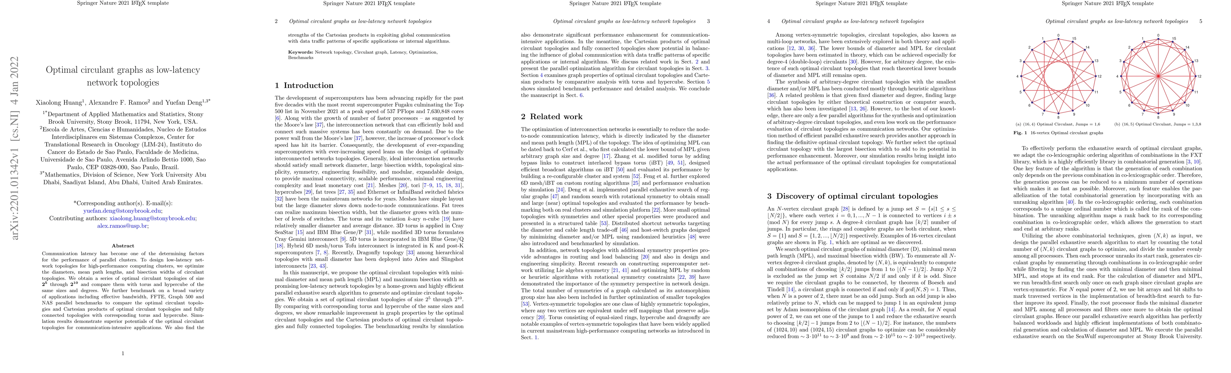 Communication latency has become one of the determining factors for the performance of parallel clusters. To design low-latency network topologies for high-performance computing clusters, we optimize the diameters, mean path lengths, and bisection widths of circulant topologies. We obtain a series of optimal circulant topologies of size $2^5$ through $2^{10}$ and compare them with torus and hypercube of the same sizes and degrees. We further benchmark on a broad variety of applications including effective bandwidth, FFTE, Graph 500 and NAS parallel benchmarks to compare the optimal circulant topologies and Cartesian products of optimal circulant topologies and fully connected topologies with corresponding torus and hypercube. Simulation results demonstrate superior potentials of the optimal circulant topologies for communication-intensive applications. We also find the strengths of the Cartesian products in exploiting global communication with data traffic patterns of specific applications or internal algorithms.