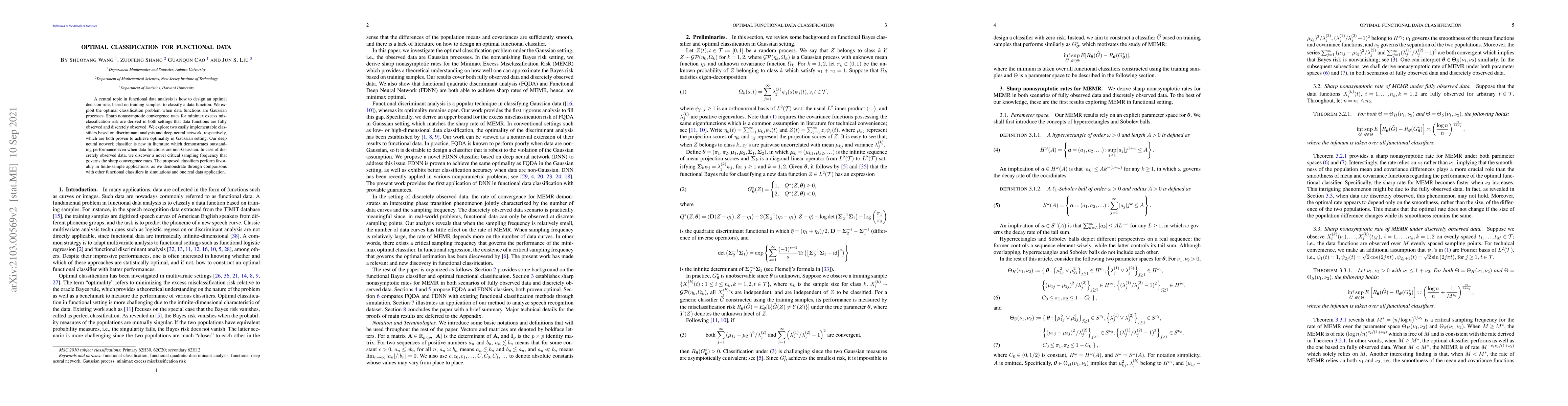 This paper develops optimal classifiers for functional data modeled as Gaussian processes, deriving sharp convergence rates for both fully and discretely observed data. It introduces two classifiers: a discriminant analysis-based one and a novel deep neural network classifier, both achieving optimal performance in Gaussian settings, with the latter also excelling in non-Gaussian cases.