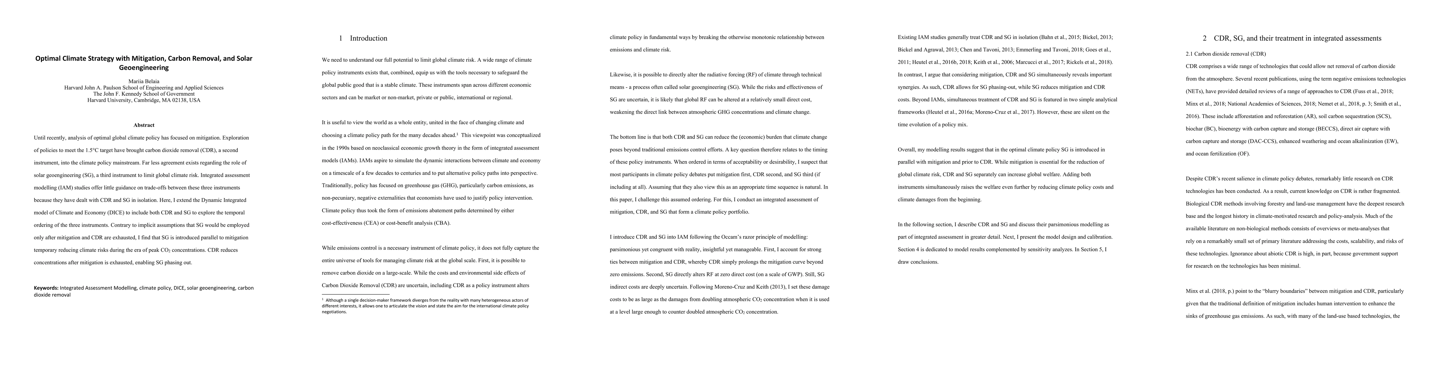 This paper explores optimal climate strategies integrating mitigation, carbon dioxide removal (CDR), and solar geoengineering (SG) using an extended Dynamic Integrated model of Climate and Economy (DICE). Contrary to the assumption that SG would only be used after mitigation and CDR, the study finds that SG can be introduced concurrently with mitigation to temporarily reduce climate risks.