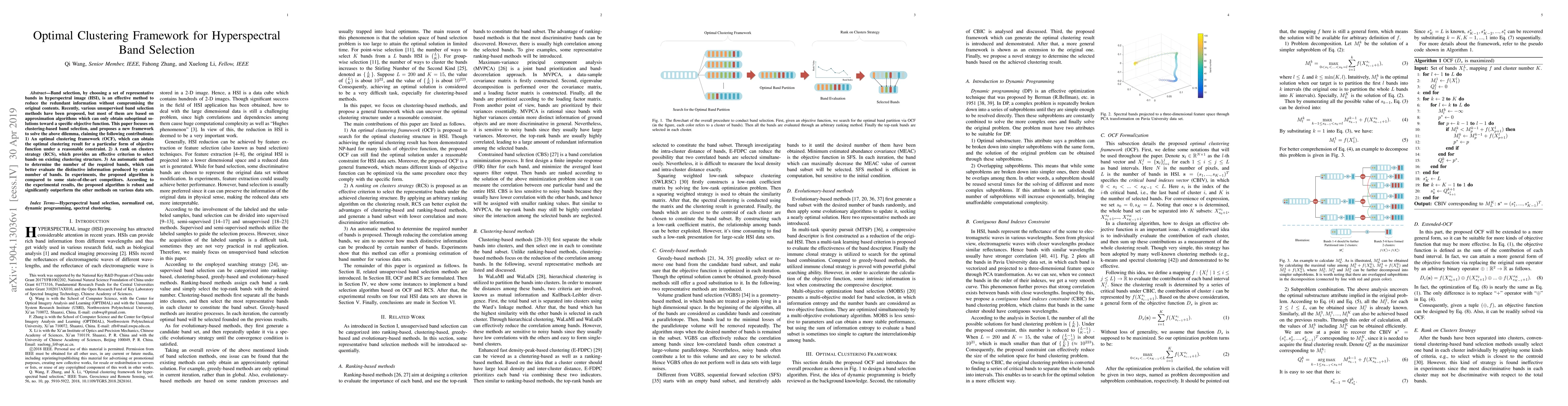 This paper introduces an optimal clustering framework (OCF) for hyperspectral band selection, offering an optimal clustering solution under a reasonable constraint. It also proposes a rank on clusters strategy (RCS) for effective band selection and an automatic method to determine the optimal number of bands, outperforming state-of-the-art competitors in experiments.