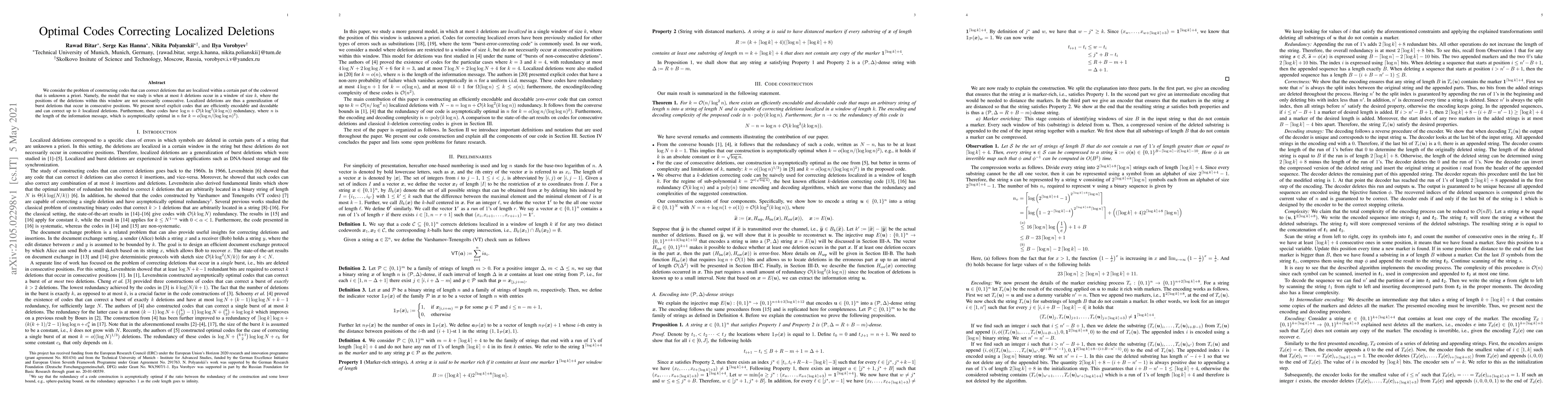 What makes this work novel is its focus on correcting localized deletion errors and its use of a combination of coding theory and information theory techniques.