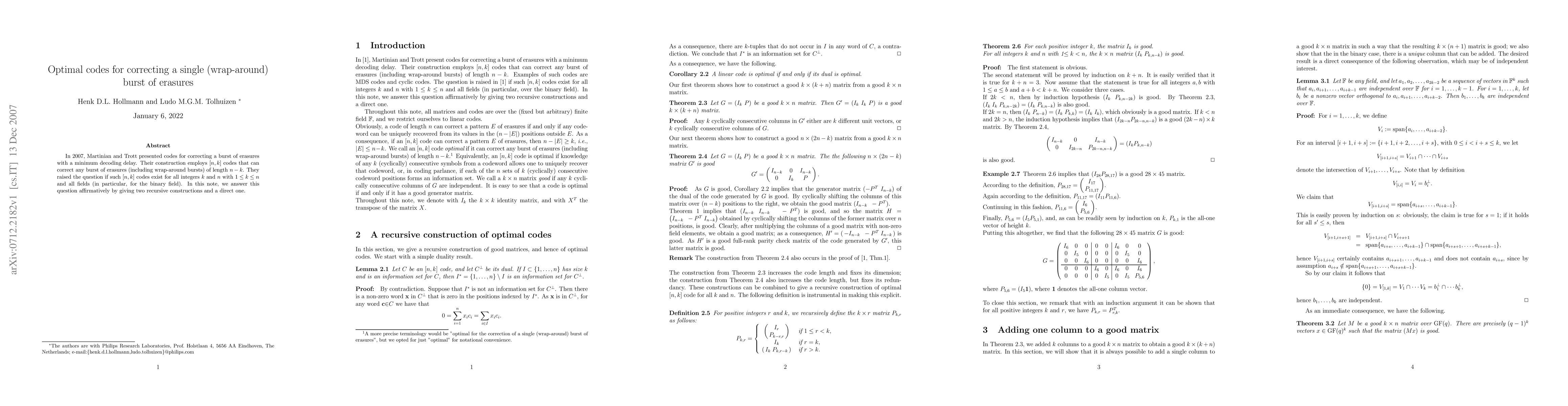 In 2007, Martinian and Trott presented codes for correcting a burst of erasures with a minimum decoding delay. Their construction employs [n,k] codes that can correct any burst of erasures (including wrap-around bursts) of length n-k. The raised the question if such [n,k] codes exist for all integers k and n with 1<= k <= n and all fields (in particular, for the binary field). In this note, we answer this question affirmatively by giving two recursive constructions and a direct one.