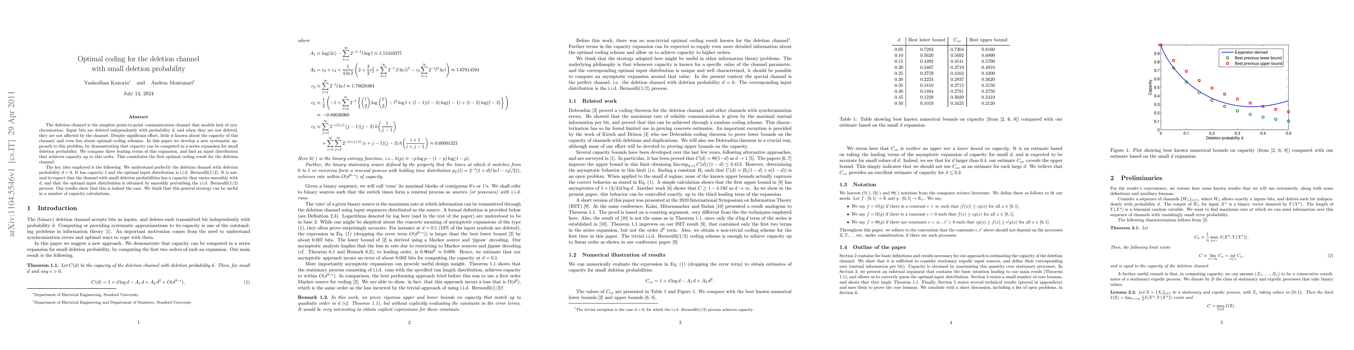 This paper develops a systematic approach to determine the capacity of the deletion channel for small deletion probabilities, computing three leading terms in a series expansion. It finds an optimal input distribution by smoothly perturbing the i.i.d. Bernoulli(1/2) process, providing the first optimal coding result for the deletion channel.