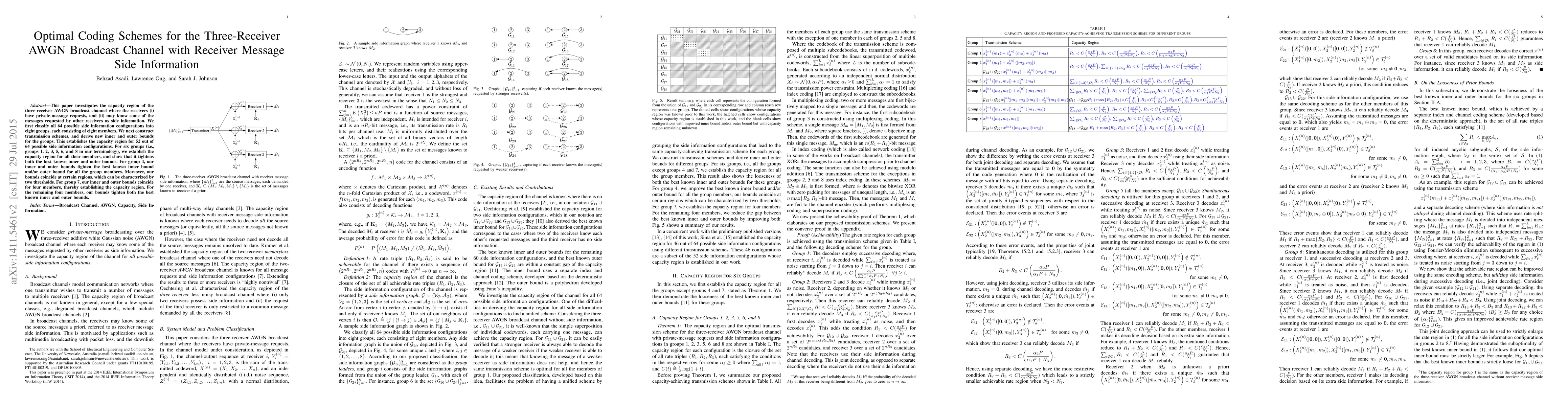 This paper explores the capacity region for a three-receiver AWGN broadcast channel with side information, classifying 64 configurations into eight groups, and deriving new inner and outer bounds that tighten the best known limits for most configurations. The capacity region is fully established for six groups, partially for group 4, and partially for group 7.