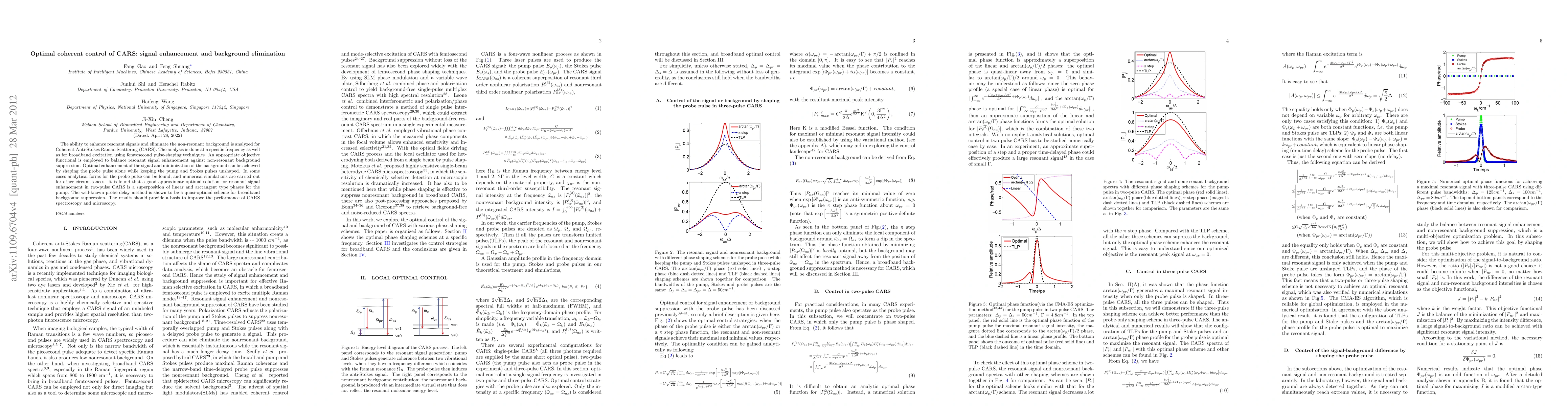 The ability to enhance resonant signals and eliminate the non-resonant background is analyzed for Coherent Anti-Stokes Raman Scattering (CARS). The analysis is done at a specific frequency as well as for broadband excitation using femtosecond pulse-shaping techniques. An appropriate objective functional is employed to balance resonant signal enhancement against non-resonant background suppression. Optimal enhancement of the signal and minimization of the background can be achieved by shaping the probe pulse alone while keeping the pump and Stokes pulses in transform-limited-form (TLF). In some cases analytical forms for the probe pulse can be found, and numerical simulations are carried out for other circumstances. It is found that a good approximate solution for the optimal pulse in the two-pulse CARS is a superposition of linear and arctangent type phases for the pump. The well-known probe delay method is shown to be a quasi-optimal scheme for background suppression. The results should provide a basis to improve the performance of CARS spectroscopy and microscopy.