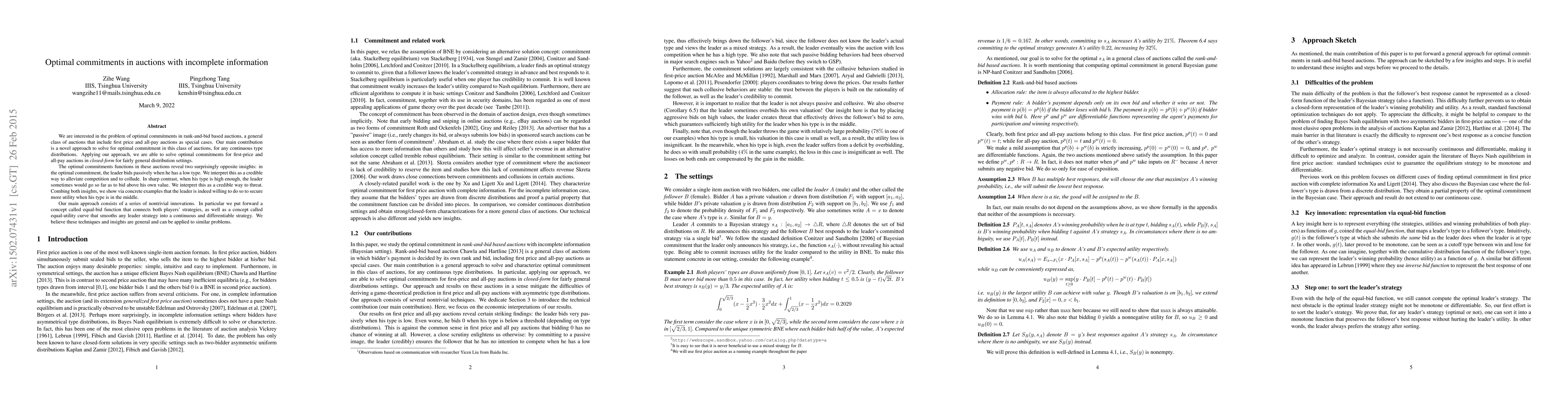 This paper develops a novel method to determine optimal commitments in rank-and-bid auctions, including first-price and all-pay auctions, for continuous type distributions. It reveals that leaders may bid passively to alleviate competition or aggressively to threaten, depending on their type, and introduces the equal-bid function and equal-utility curve to smooth strategies.