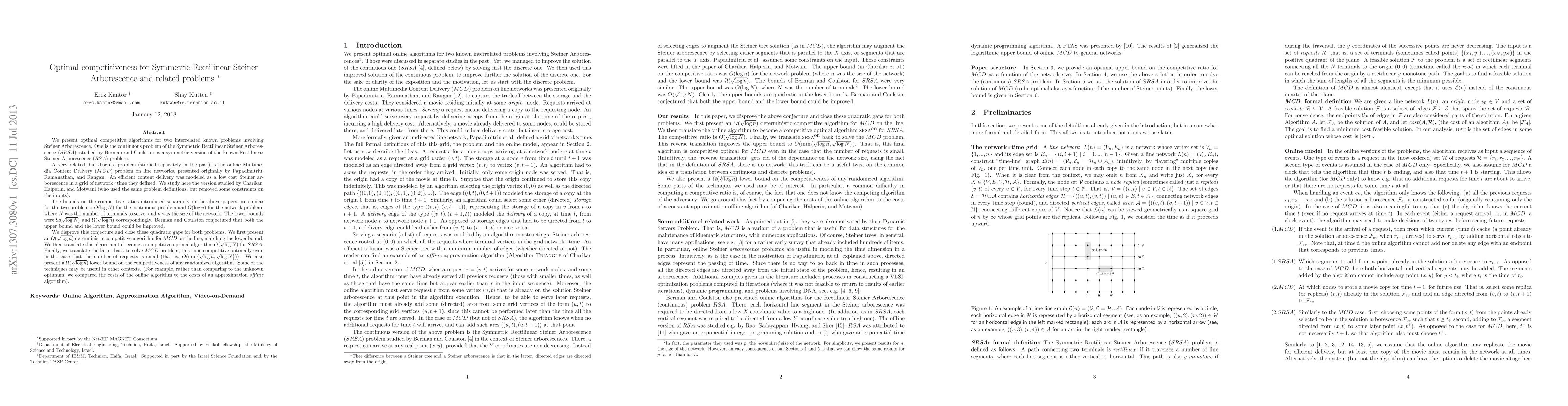This paper presents optimal competitive algorithms for two related problems: the Symmetric Rectilinear Steiner Arborescence (SRSA) and the online Multimedia Content Delivery (MCD) problem. It disproves a conjecture suggesting the bounds could be improved, providing competitive algorithms that match or exceed the existing lower bounds.