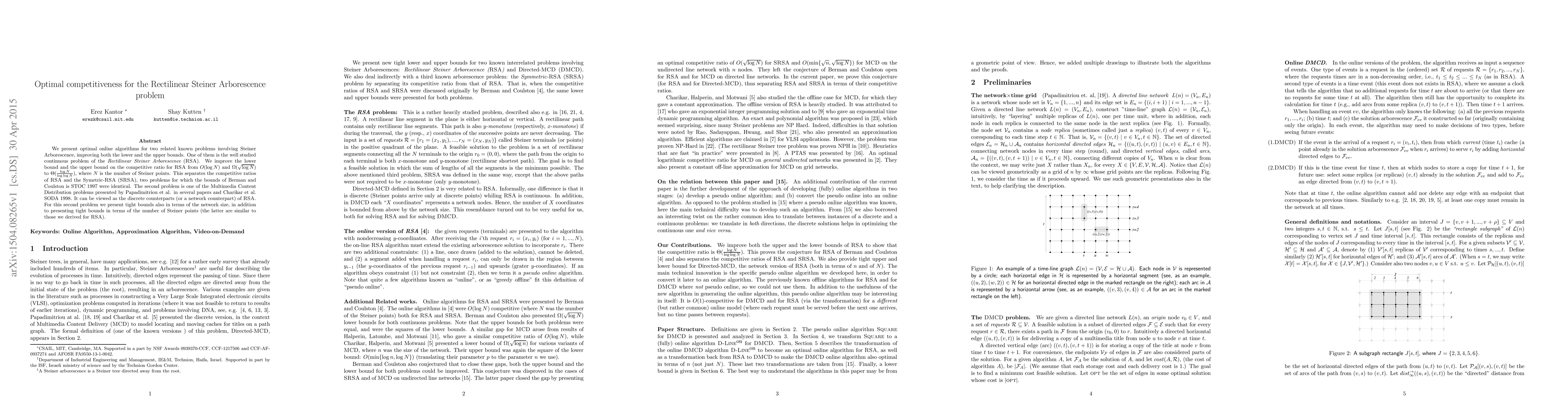 The paper presents optimal online algorithms that improve both lower and upper bounds for the Rectilinear Steiner Arborescence ($RSA$) problem, establishing a competitive ratio of $\Theta(\frac{\log N}{\log \log N})$, where $N$ is the number of Steiner points. It also provides tight bounds for a related Multimedia Content Distribution problem, differentiating it from its symmetric counterpart.