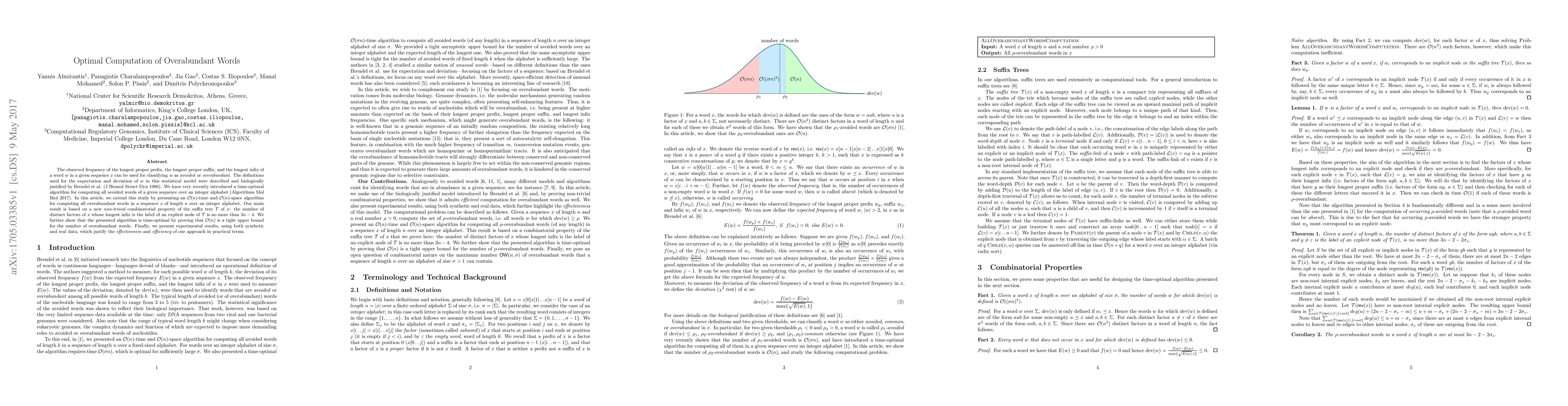The observed frequency of the longest proper prefix, the longest proper suffix, and the longest infix of a word $w$ in a given sequence $x$ can be used for classifying $w$ as avoided or overabundant. The definitions used for the expectation and deviation of $w$ in this statistical model were described and biologically justified by Brendel et al. (J Biomol Struct Dyn 1986). We have very recently introduced a time-optimal algorithm for computing all avoided words of a given sequence over an integer alphabet (Algorithms Mol Biol 2017). In this article, we extend this study by presenting an $\mathcal{O}(n)$-time and $\mathcal{O}(n)$-space algorithm for computing all overabundant words in a sequence $x$ of length $n$ over an integer alphabet. Our main result is based on a new non-trivial combinatorial property of the suffix tree $\mathcal{T}$ of $x$: the number of distinct factors of $x$ whose longest infix is the label of an explicit node of $\mathcal{T}$ is no more than $3n-4$. We further show that the presented algorithm is time-optimal by proving that $\mathcal{O}(n)$ is a tight upper bound for the number of overabundant words. Finally, we present experimental results, using both synthetic and real data, which justify the effectiveness and efficiency of our approach in practical terms.
