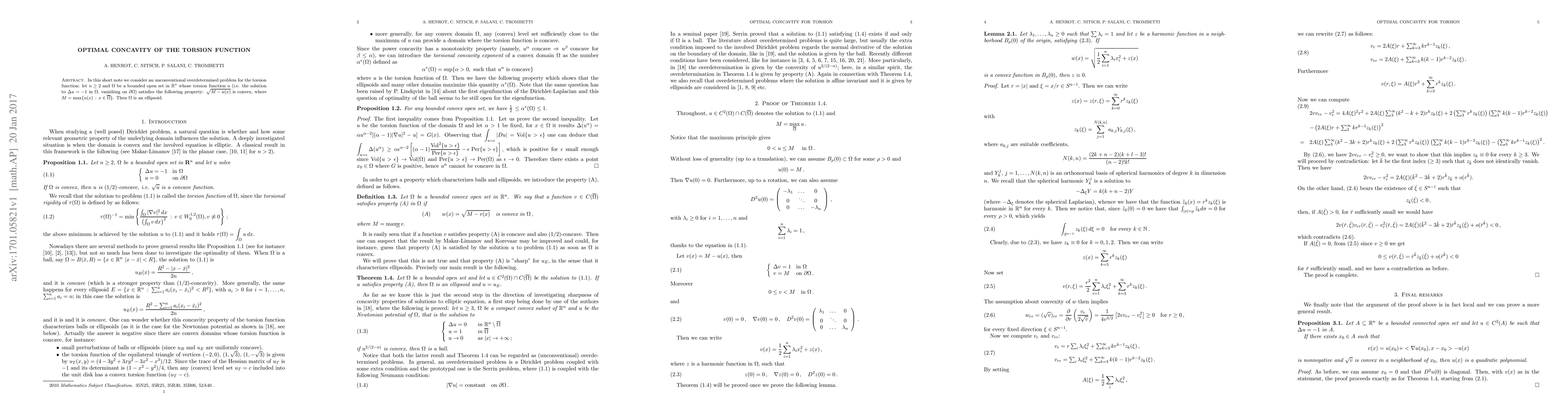 In this short note we consider an unconventional overdetermined problem for the torsion function: let $n\geq 2$ and $\Omega$ be a bounded open set in $\mathbb{R}^n$ whose torsion function $u$ (i.e. the solution to $\Delta u=-1$ in $\Omega$, vanishing on $\partial\Omega$) satisfies the following property: $\sqrt{M-u(x)}$ is convex, where $M=\max\{u(x)\,:\,x\in\overline\Omega\}$. Then $\Omega$ is an ellipsoid.