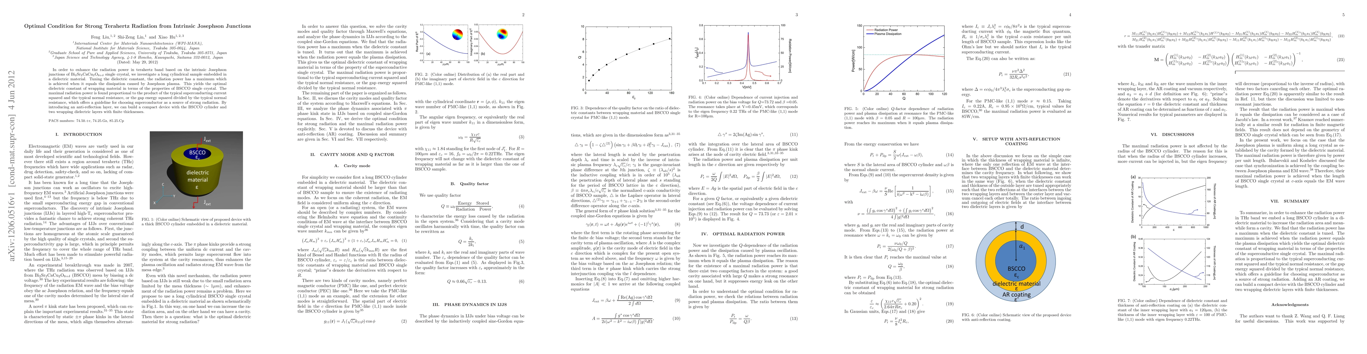 This paper investigates the optimal dielectric constant for maximizing terahertz radiation power from intrinsic Josephson junctions in Bi$_2$Sr$_2$CaCu$_2$O$_{8+\delta}$ crystals, finding that the maximum power occurs when the dielectric constant matches the dissipation from Josephson plasma. The study also proposes a compact device design using BSCCO cylinders and dielectric layers for enhanced radiation.