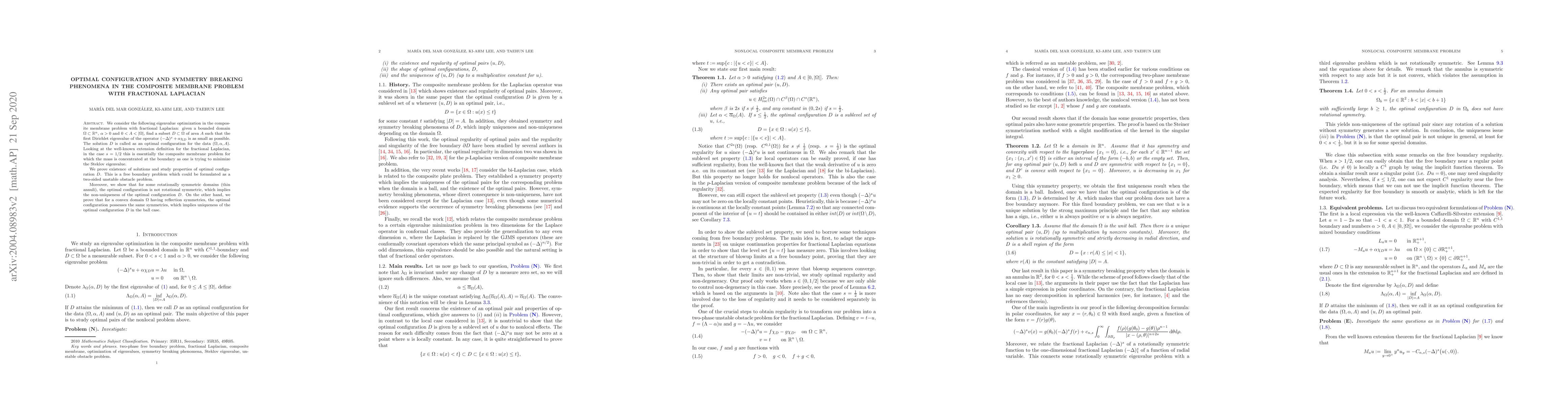 This paper investigates the optimal configuration in the composite membrane problem with a fractional Laplacian, focusing on minimizing the first Dirichlet eigenvalue. It proves the existence of optimal configurations and demonstrates symmetry breaking phenomena, showing non-uniqueness for certain domains and uniqueness for convex domains with reflection symmetries.