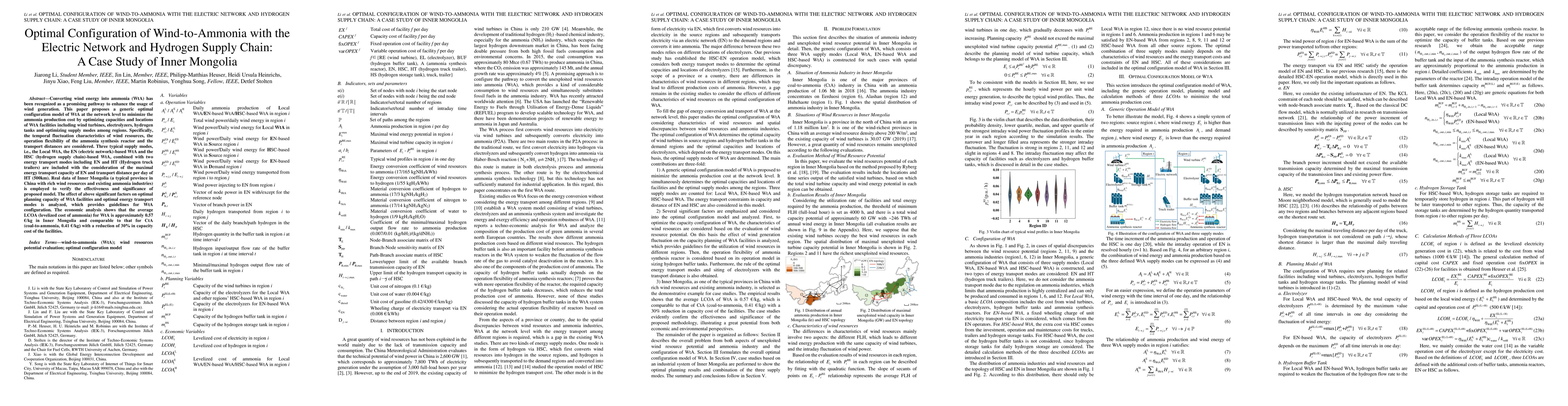 This paper proposes a model to optimize wind-to-ammonia production in Inner Mongolia, reducing costs by 30% compared to coal-to-ammonia, with average LCOA of 0.57 euro/kg.