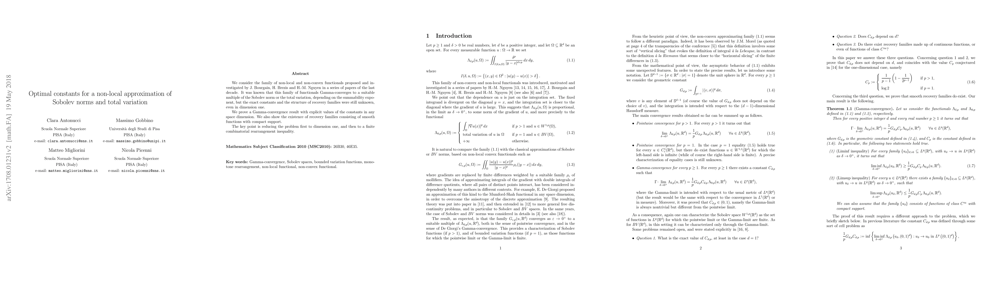 Researchers find explicit constants for a non-local approximation of Sobolev norms and total variation in any space dimension, solving a decade-long problem with the help of a finite combinatorial rearrangement inequality.