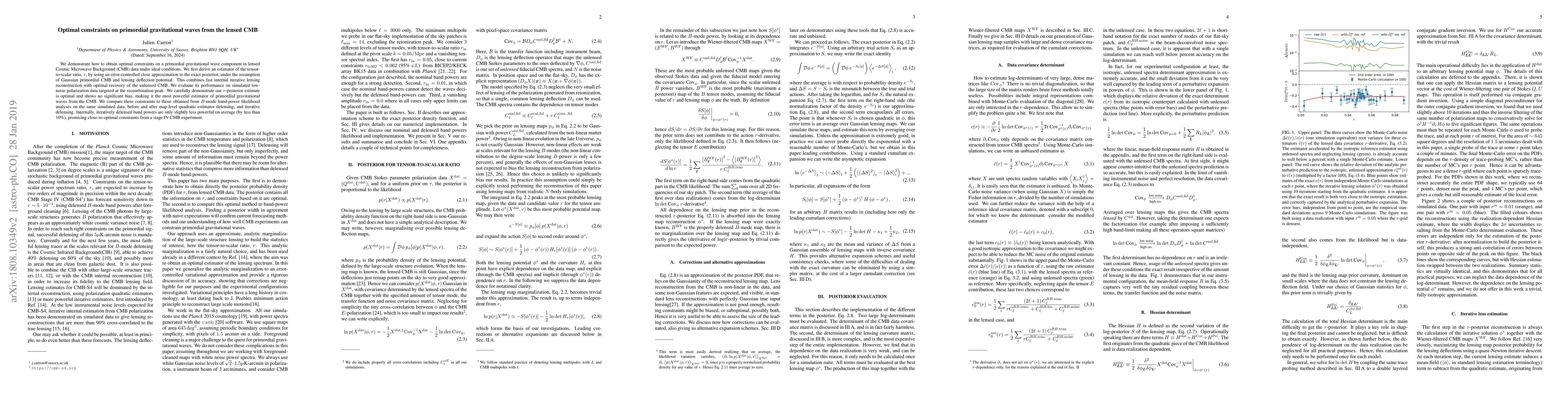We demonstrate how to obtain optimal constraints on a primordial gravitational wave component in lensed Cosmic Microwave Background (CMB) data under ideal conditions. We first derive an estimator of the tensor-to-scalar ratio, $r$, by using an error-controlled close approximation to the exact posterior, under the assumption of Gaussian primordial CMB and lensing deflection potential. This combines fast internal iterative lensing reconstruction with optimal recovery of the unlensed CMB. We evaluate its performance on simulated low-noise polarization data targeted at the recombination peak. We carefully demonstrate our $r$-posterior estimate is optimal and shows no significant bias, making it the most powerful estimator of primordial gravitational waves from the CMB. We compare these constraints to those obtained from $B$-mode band-power likelihood analyses on the same simulated data, before and after map-level quadratic estimator delensing, and iterative delensing. Internally, iteratively delensed band powers are only slightly less powerful on average (by less than 10\%), promising close-to-optimal constraints from a stage IV CMB experiment.