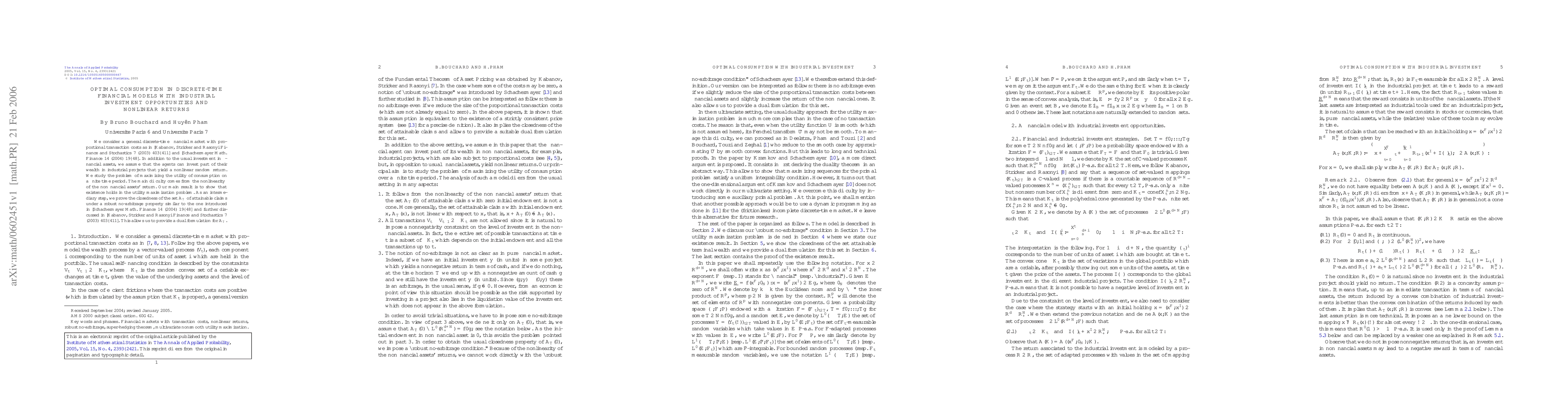 We consider a general discrete-time financial market with proportional transaction costs as in [Kabanov, Stricker and R\'{a}sonyi Finance and Stochastics 7 (2003) 403--411] and [Schachermayer Math. Finance 14 (2004) 19--48]. In addition to the usual investment in financial assets, we assume that the agents can invest part of their wealth in industrial projects that yield a nonlinear random return. We study the problem of maximizing the utility of consumption on a finite time period. The main difficulty comes from the nonlinearity of the nonfinancial assets' return. Our main result is to show that existence holds in the utility maximization problem. As an intermediary step, we prove the closedness of the set $A_T$ of attainable claims under a robust no-arbitrage property similar to the one introduced in [Schachermayer Math. Finance 14 (2004) 19--48] and further discussed in [Kabanov, Stricker and R\'{a}sonyi Finance and Stochastics 7 (2003) 403--411]. This allows us to provide a dual formulation for $A_T$.