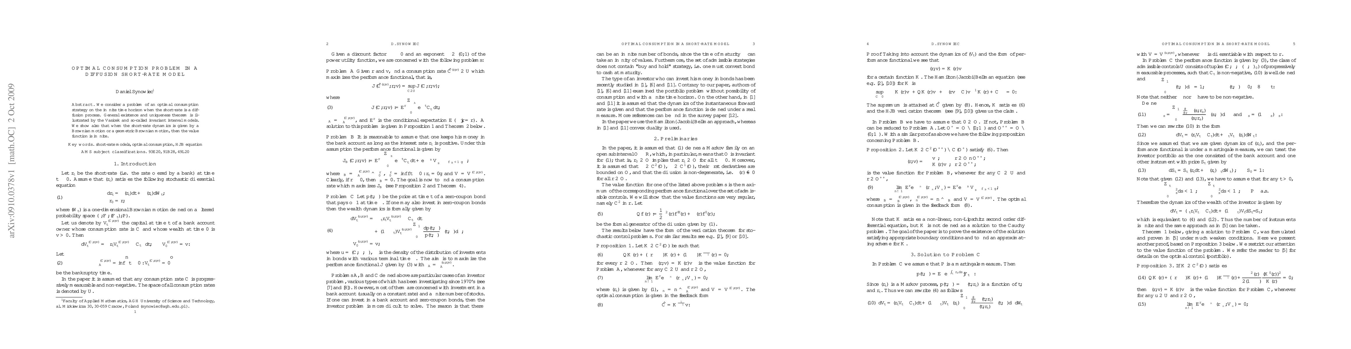 This paper explores an optimal consumption strategy over an infinite horizon with a short-rate as a diffusion process, proving existence and uniqueness via Vasicek and invariant interval models. It reveals that when short-rate dynamics are purely Brownian or geometric Brownian, the value function becomes infinite.