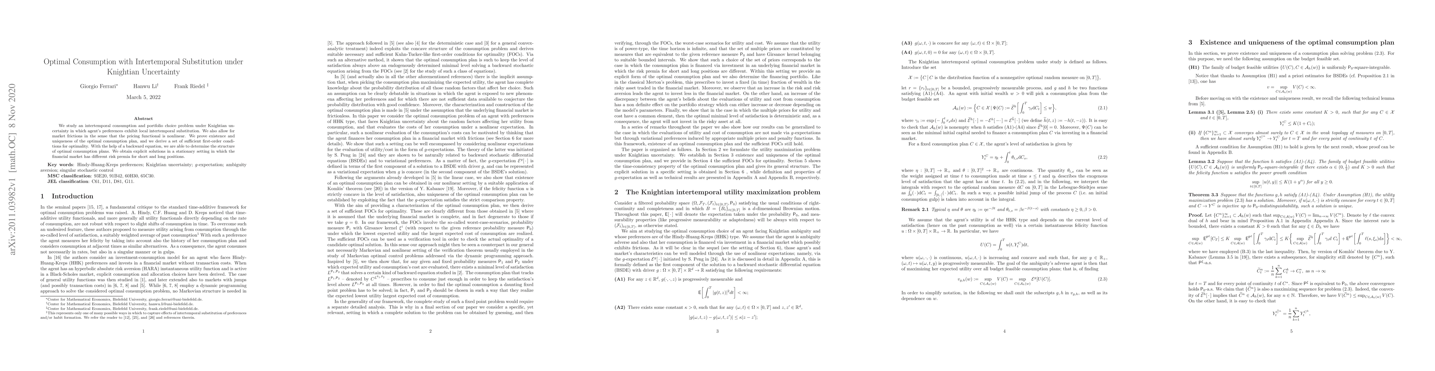This paper investigates optimal consumption and portfolio choices under Knightian uncertainty, where agents exhibit local intertemporal substitution. It also considers nonlinear market frictions and proves the existence and uniqueness of optimal consumption plans, deriving sufficient first-order conditions for optimality.