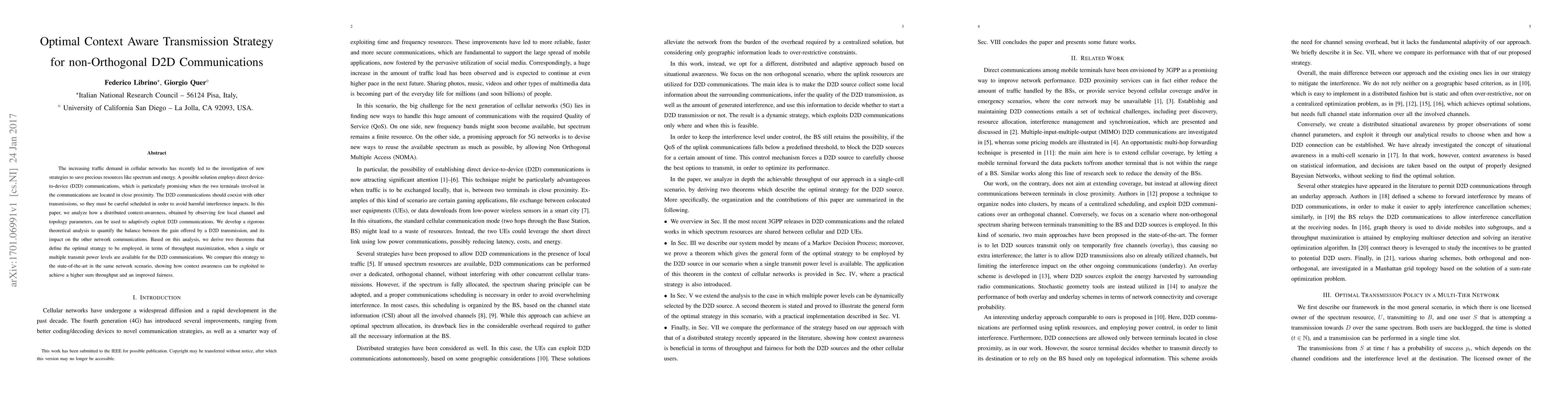 This paper develops an optimal transmission strategy for non-orthogonal D2D communications using context awareness to maximize throughput while minimizing interference. It presents theoretical analysis and theorems to define the best strategy for single or multiple transmit power levels, demonstrating improved sum throughput and fairness compared to existing methods.