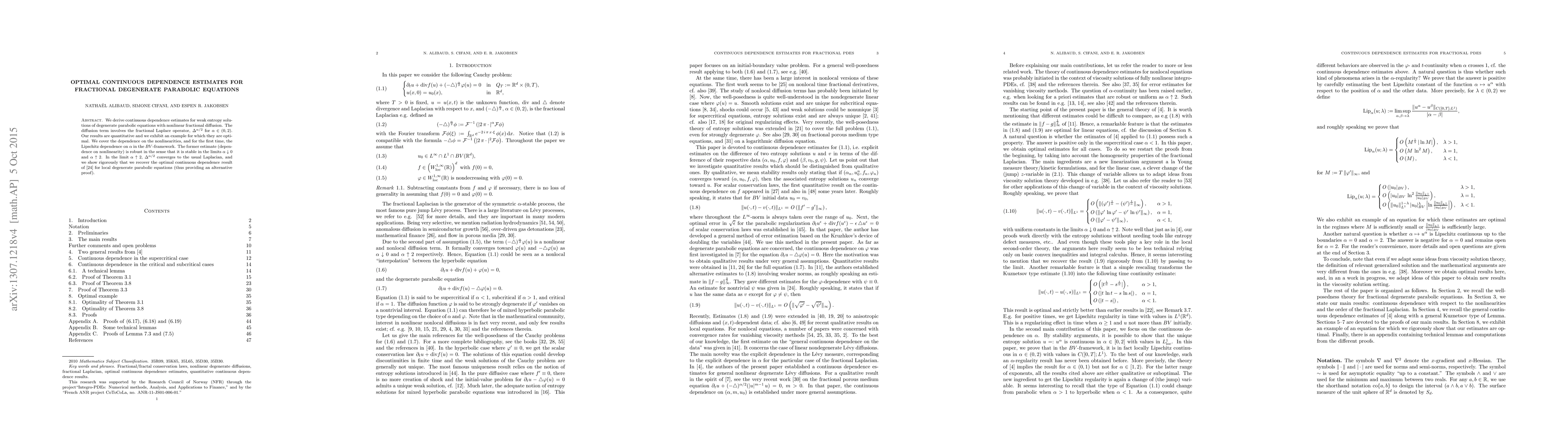 This paper derives quantitative continuous dependence estimates for weak entropy solutions of degenerate parabolic equations with fractional diffusion, showing optimal results and Lipschitz dependence on the fractional parameter $\alpha$. The estimates are robust and recover known results in the limit as $\alpha$ approaches 2.