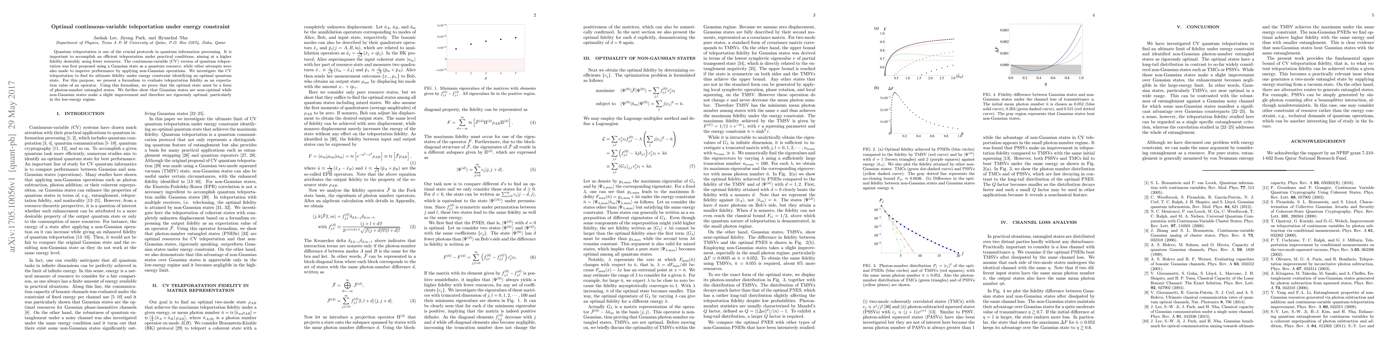This paper investigates the optimal fidelity of continuous-variable quantum teleportation under energy constraints, demonstrating that photon-number entangled states are the best choice for achieving high fidelity. It also shows that Gaussian states are nearly optimal, with non-Gaussian states providing slight improvements, especially in low-energy scenarios.