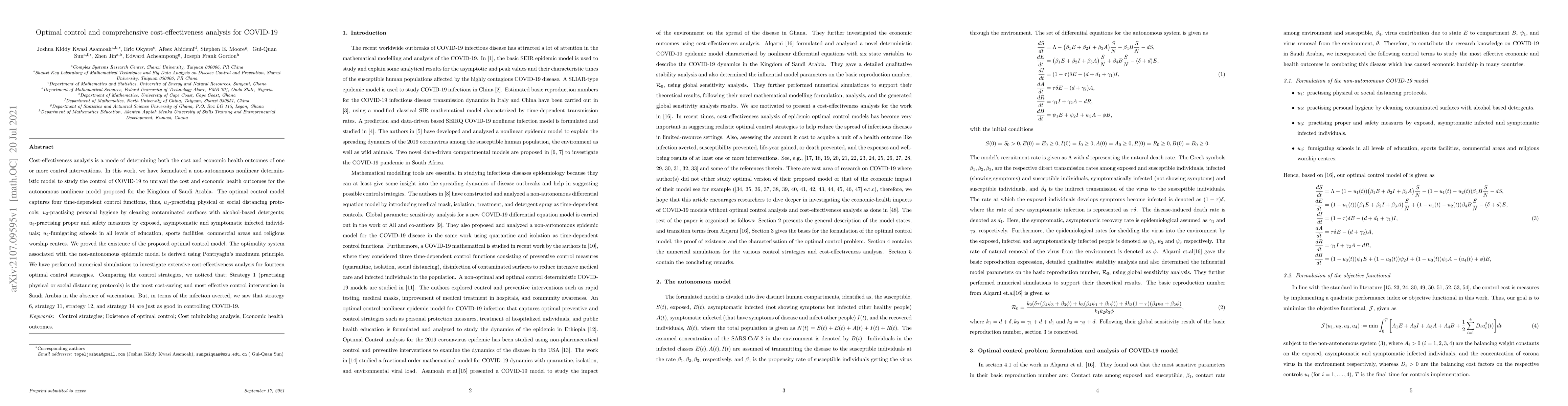 This research formulates a non-autonomous nonlinear model to study COVID-19 control in Saudi Arabia, identifying optimal strategies through cost-effectiveness analysis. The model includes four control functions, and simulations show that physical distancing is the most cost-effective, while several strategies are equally effective in controlling infections.