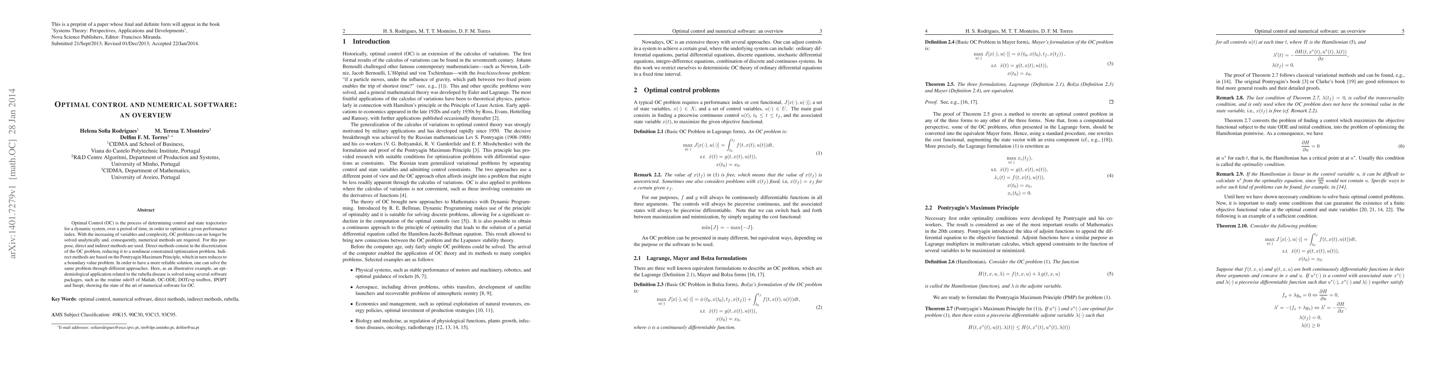 This paper provides an overview of optimal control (OC) methods, highlighting the shift from analytical to numerical solutions due to increasing complexity. It discusses direct and indirect numerical methods, exemplified by solving an epidemiological rubella model using various software tools like Matlab's ode45, OC-ODE, DOTcvp toolbox, IPOPT, and Snopt.