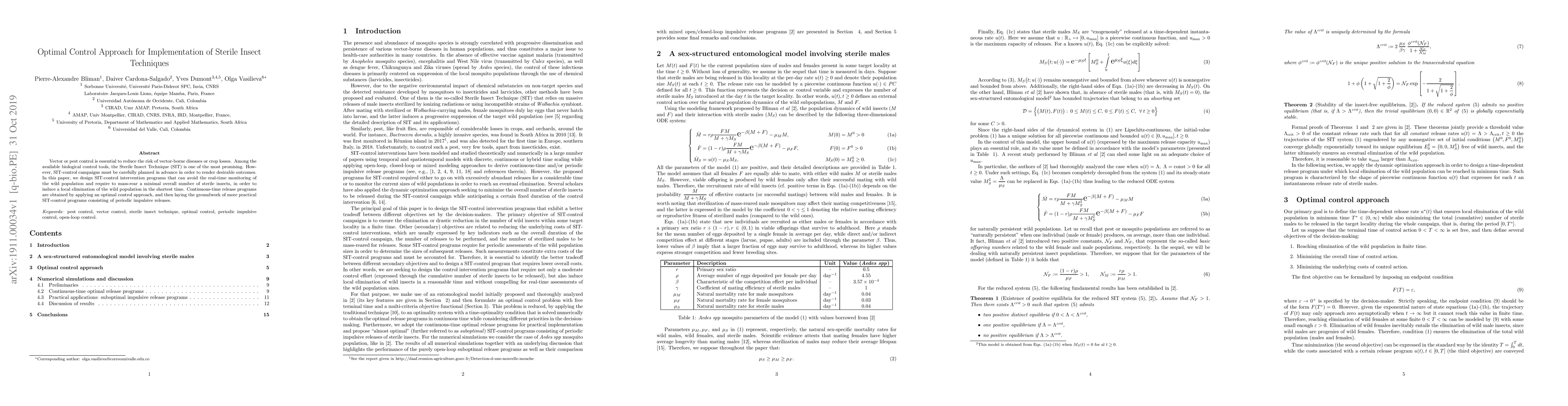 This paper develops an optimal control strategy for implementing Sterile Insect Technique (SIT) to control vector or pest populations, aiming to minimize the number of sterile insects released while achieving local elimination in the shortest time. The approach avoids real-time monitoring and provides a framework for practical SIT-control programs through periodic impulsive releases.