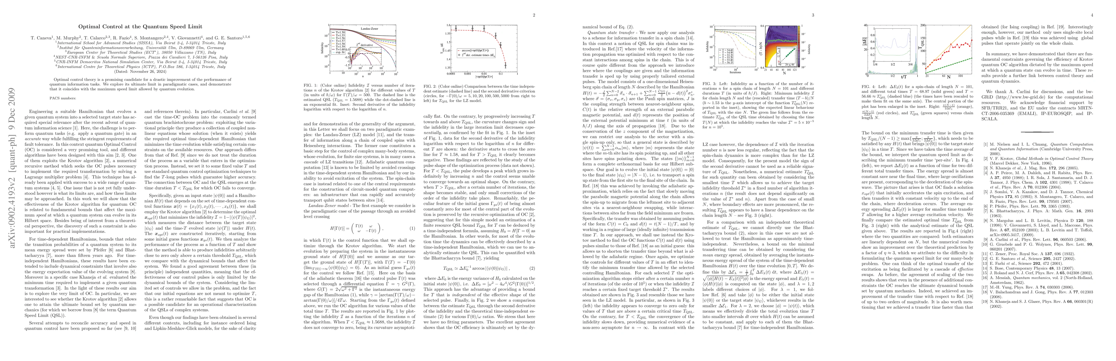 This paper investigates the application of optimal control theory to enhance quantum information processing, revealing that its performance reaches the quantum speed limit, the maximum allowable speed of quantum evolution.