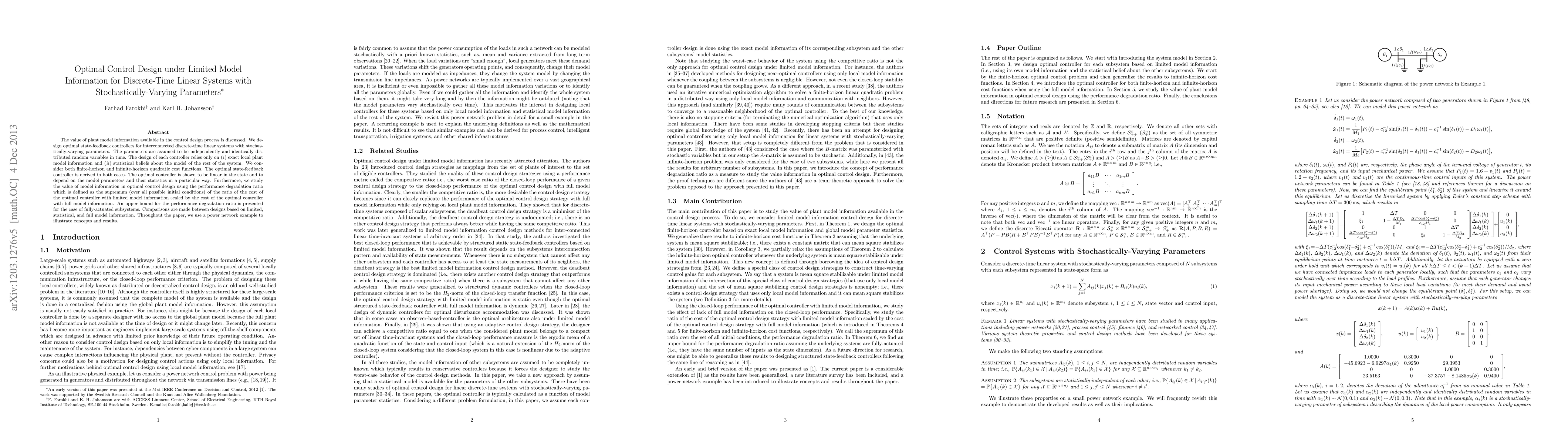 The value of plant model information available in the control design process is discussed. We design optimal state-feedback controllers for interconnected discrete-time linear systems with stochastically-varying parameters. The parameters are assumed to be independently and identically distributed random variables in time. The design of each controller relies only on (i) exact local plant model information and (ii) statistical beliefs about the model of the rest of the system. We consider both finite-horizon and infinite-horizon quadratic cost functions. The optimal state-feedback controller is derived in both cases. The optimal controller is shown to be linear in the state and to depend on the model parameters and their statistics in a particular way. Furthermore, we study the value of model information in optimal control design using the performance degradation ratio which is defined as the supremum (over all possible initial conditions) of the ratio of the cost of the optimal controller with limited model information scaled by the cost of the optimal controller with full model information. An upper bound for the performance degradation ratio is presented for the case of fully-actuated subsystems. Comparisons are made between designs based on limited, statistical, and full model information. Throughout the paper, we use a power network example to illustrate concepts and results.