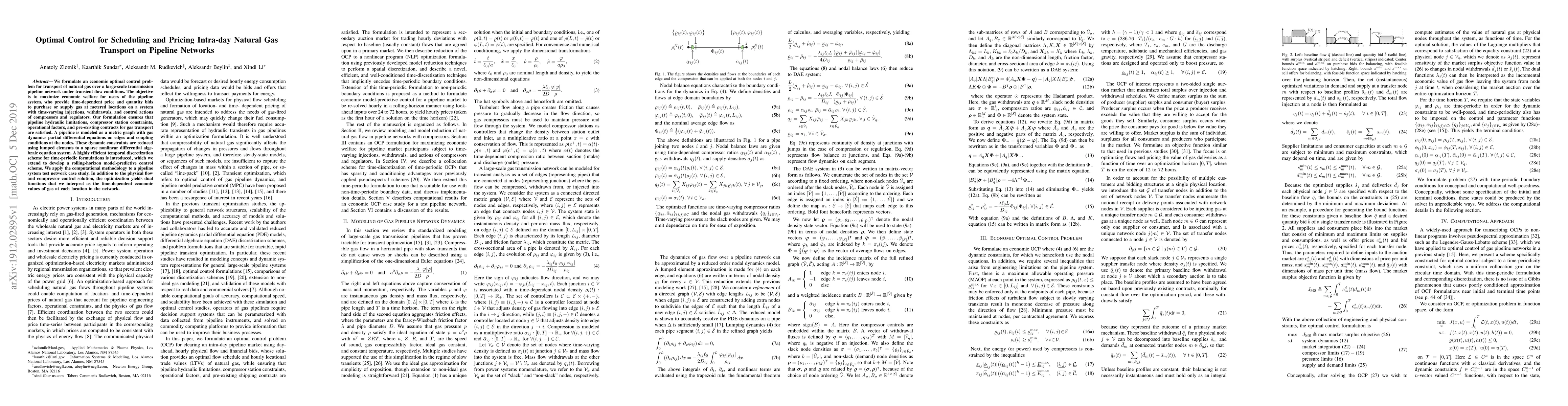 This paper formulates an optimal control problem to maximize economic welfare in scheduling and pricing natural gas transport over a large-scale pipeline network, incorporating transient flow conditions, hydraulic limitations, and operational constraints. The methodology employs a rolling-horizon model-predictive control scheme and is demonstrated on a test network case study.