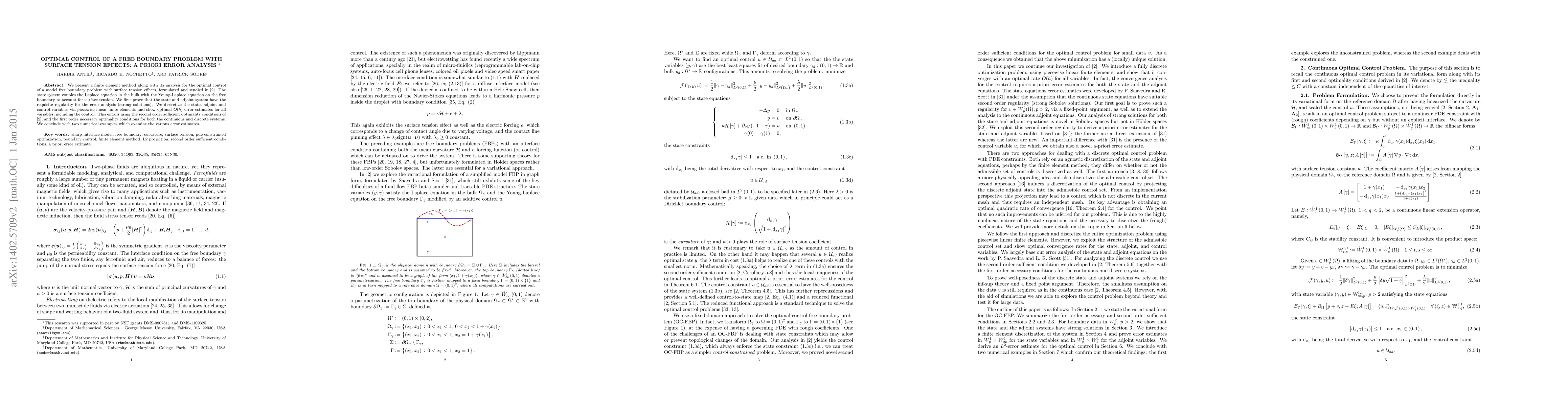 Researchers develop a method for controlling a free boundary problem with surface tension effects, achieving optimal O(h) error estimates using finite element analysis and second-order sufficient optimality conditions.