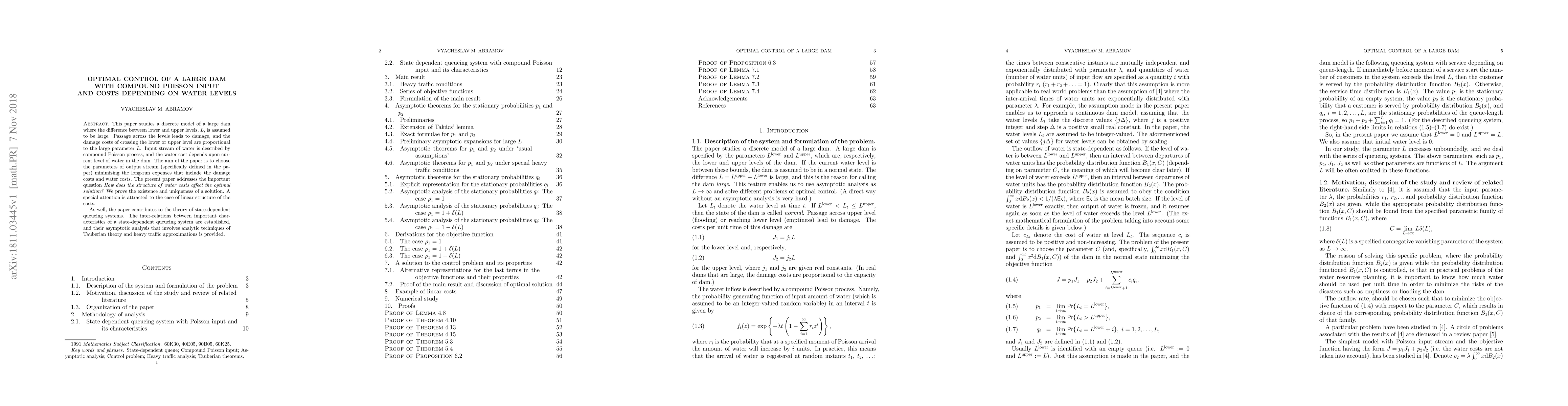 This paper studies a discrete model of a large dam where the difference between lower and upper levels, $L$, is assumed to be large. Passage across the levels leads to damage, and the damage costs of crossing the lower or upper level are proportional to the large parameter $L$. Input stream of water is described by compound Poisson process, and the water cost depends upon current level of water in the dam. The aim of the paper is to choose the parameters of output stream (specifically defined in the paper) minimizing the long-run expenses that include the damage costs and water costs. The present paper addresses the important question \emph{How does the structure of water costs affect the optimal solution?} We prove the existence and uniqueness of a solution. A special attention is attracted to the case of linear structure of the costs. As well, the paper contributes to the theory of state-dependent queueing systems. The inter-relations between important characteristics of a state-dependent queueing system are established, and their asymptotic analysis that involves analytic techniques of Tauberian theory and heavy traffic approximations is provided.