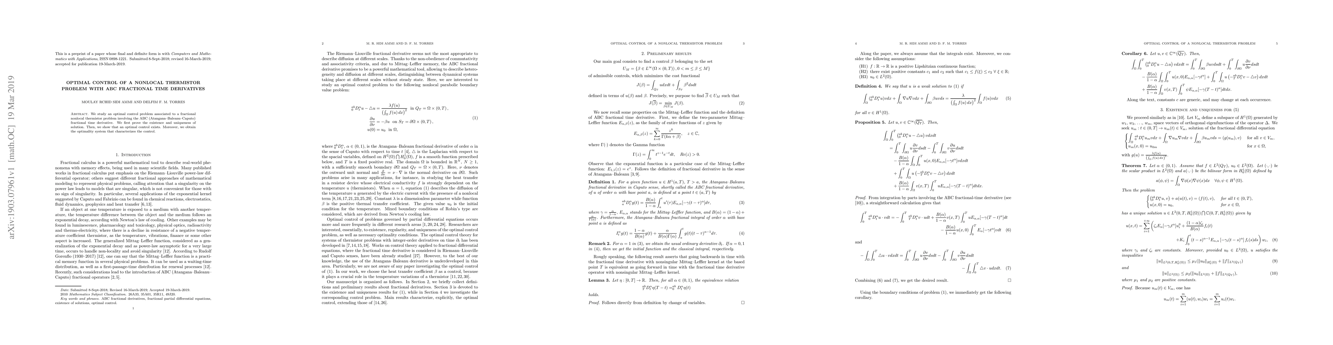 This paper investigates an optimal control problem for a fractional nonlocal thermistor model using ABC fractional time derivatives. It proves the existence and uniqueness of the solution and demonstrates the existence of an optimal control, along with deriving the optimality system for the control.